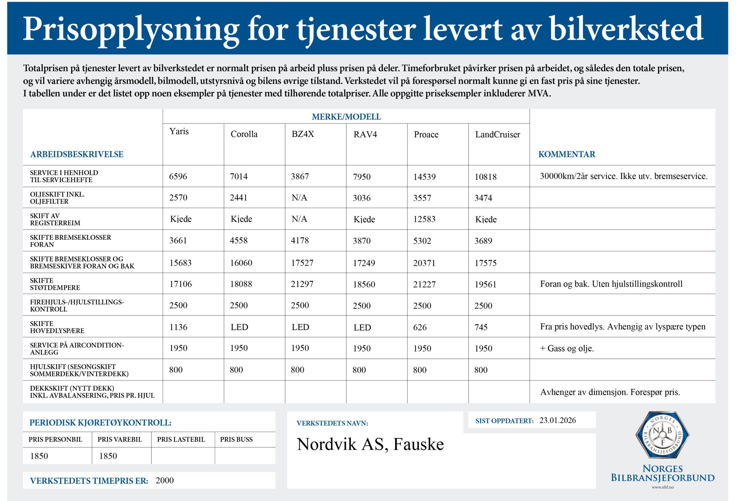 Ditt lokale bilverksted finner du i Vikaveien 50 – Fauske. Nordvik AS er et godkjent verksted for alle bilmerker. Vi tilbyr service, EU-kontroll og reparasjon av biler til konkurransedyktige priser. Med lang erfaring og dyktige medarbeidere, kan du være sikker på at bilen din er i trygge hender.