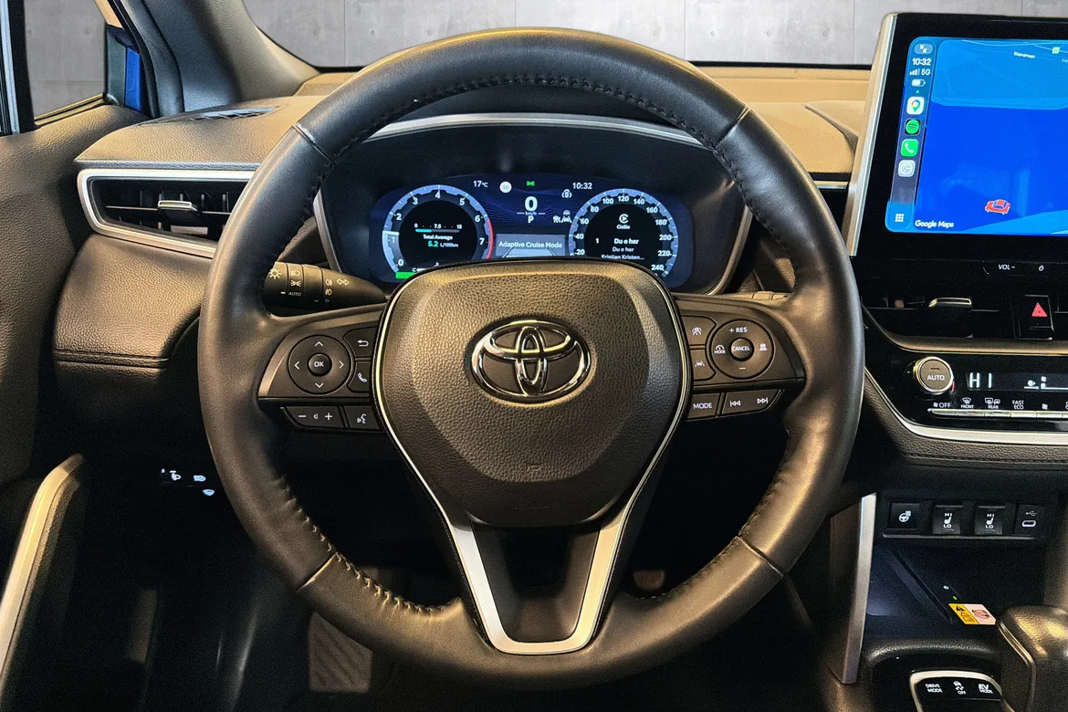 Corolla Cross er den første globale Toyota-modellen som er utstyrt med den nyeste, 5. generasjon av Toyotas velkjente hybridteknologi. Den nye hybridmotoren på 2,0 liter sørger for en herlig kombinasjon av effekt og lave CO2-utslipp. Og takket være det intelligente systemet for firehjulsdrift tar bilen seg godt frem i alle slags vei- og føreforhold. Akselerasjonen er forbedret, drivstofføkonomien imponerende og det uten å måtte stoppe og lade underveis.