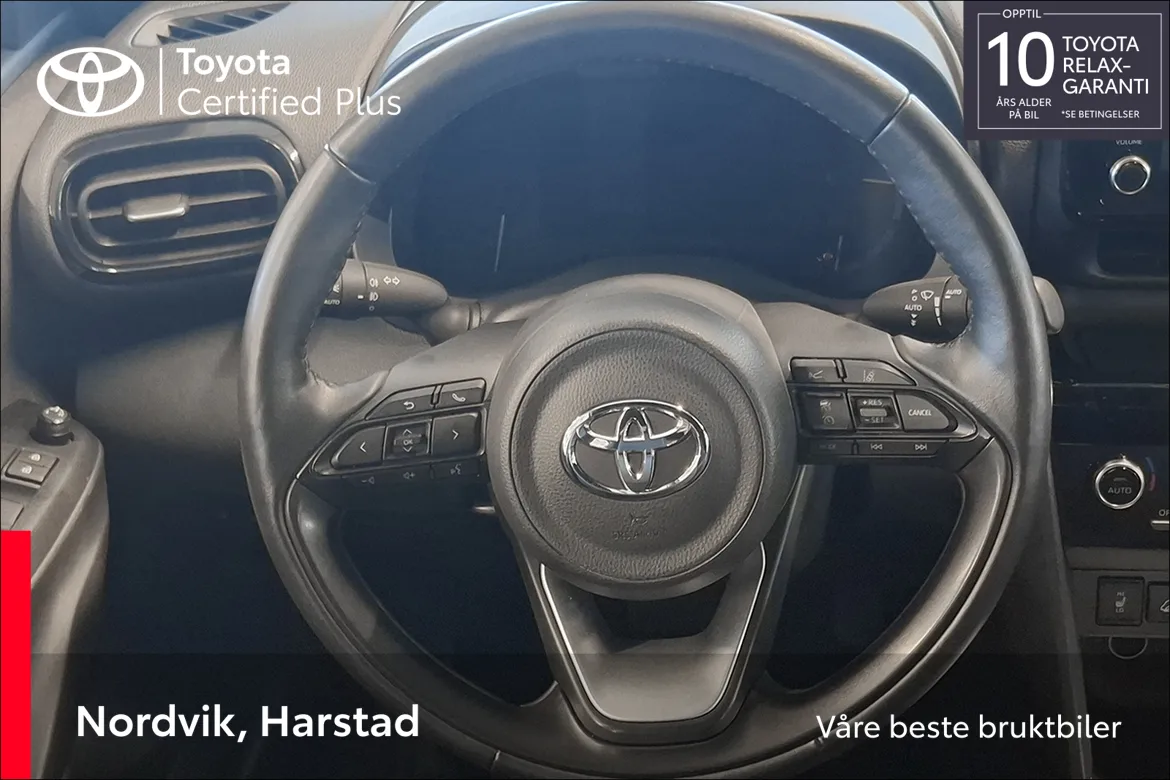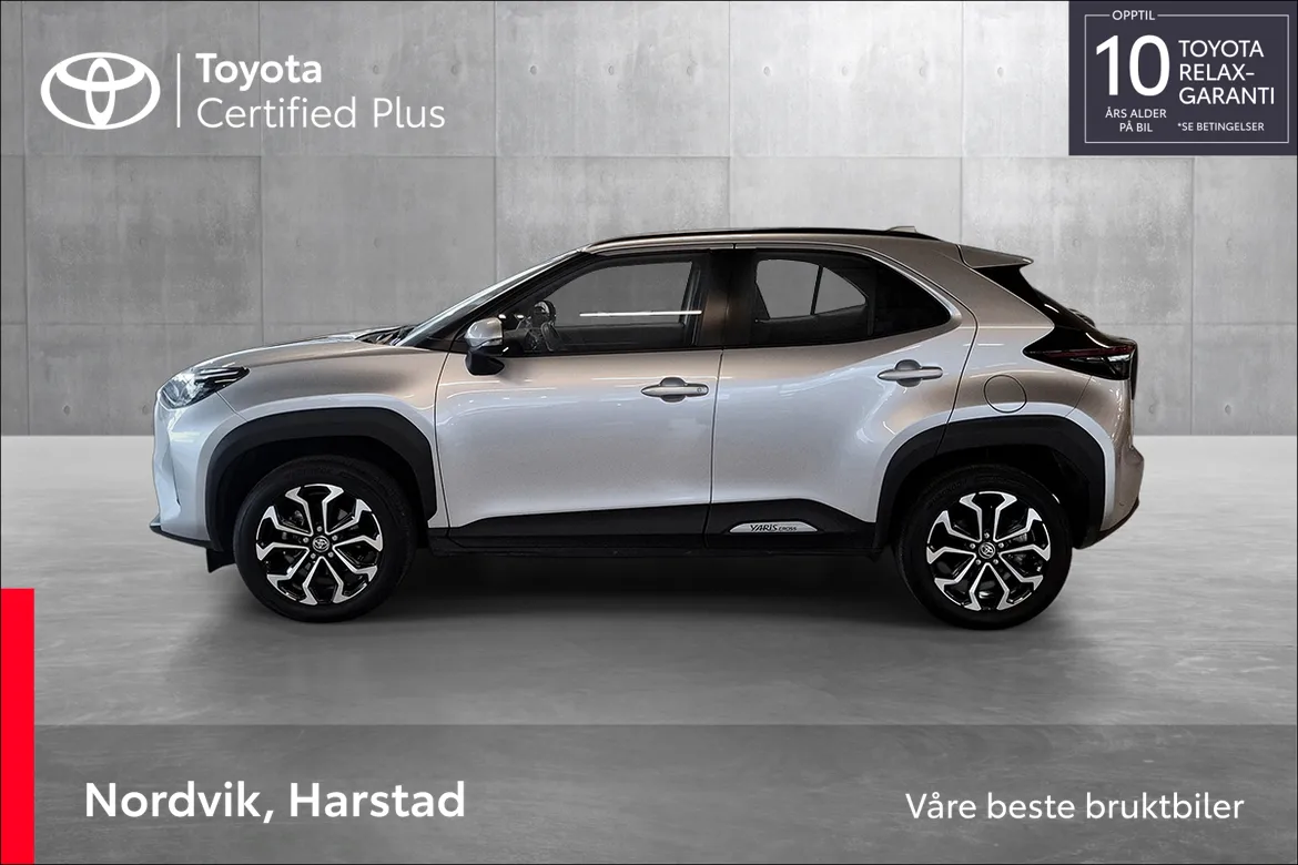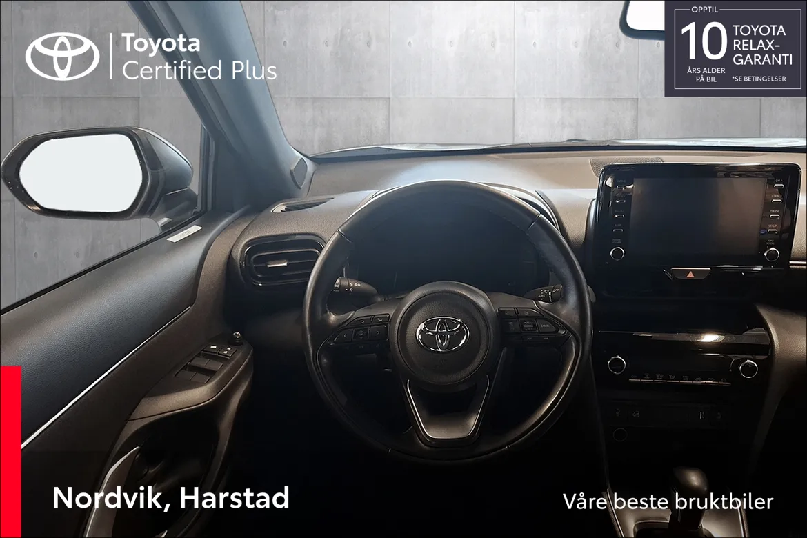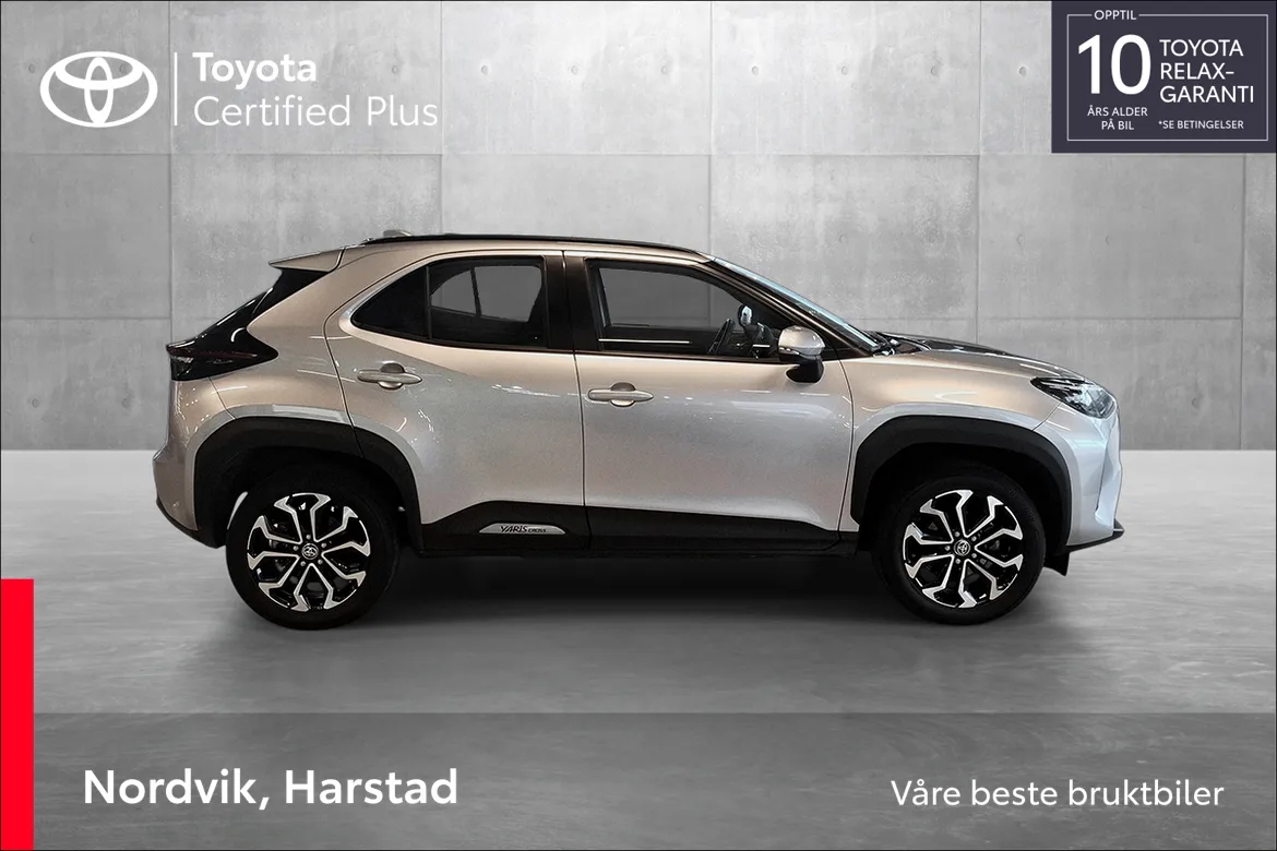 Toyota Yaris Cross er en kompakt SUV som kombinerer et flott design med ekte SUV-egenskaper. Den forhøyede sittestillingen og romslige kupéen gir deg god oversikt over veien og en komfortabel kjøreopplevelse i hverdagen.