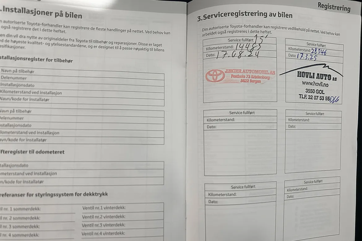 Bilen har fått service i henhold til fabrikkens retningslinjer.