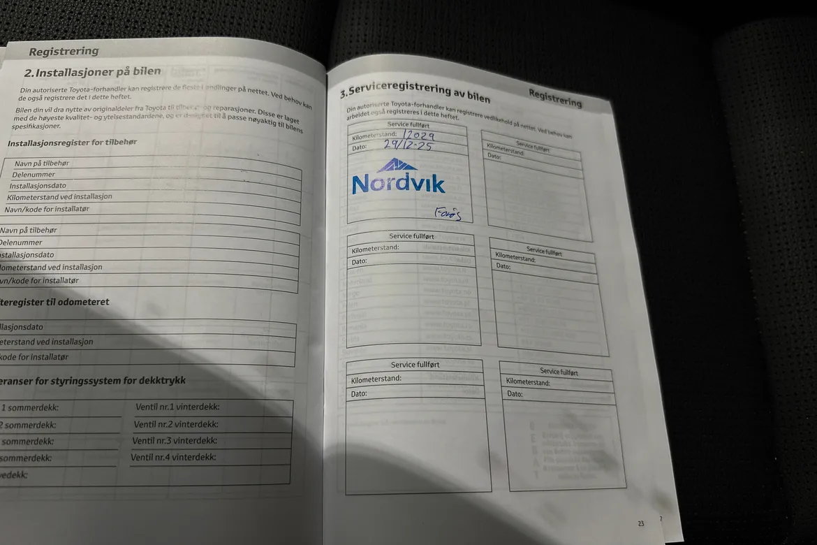 Bilens serviceprogram er fulgt. Bilen har fått service i henhold til fabrikkens retningslinjer.
