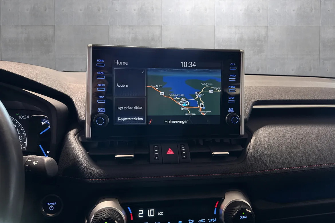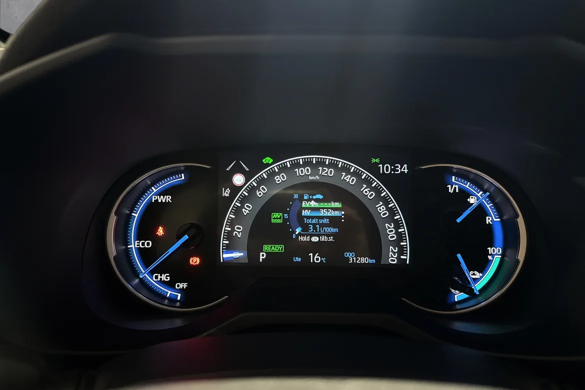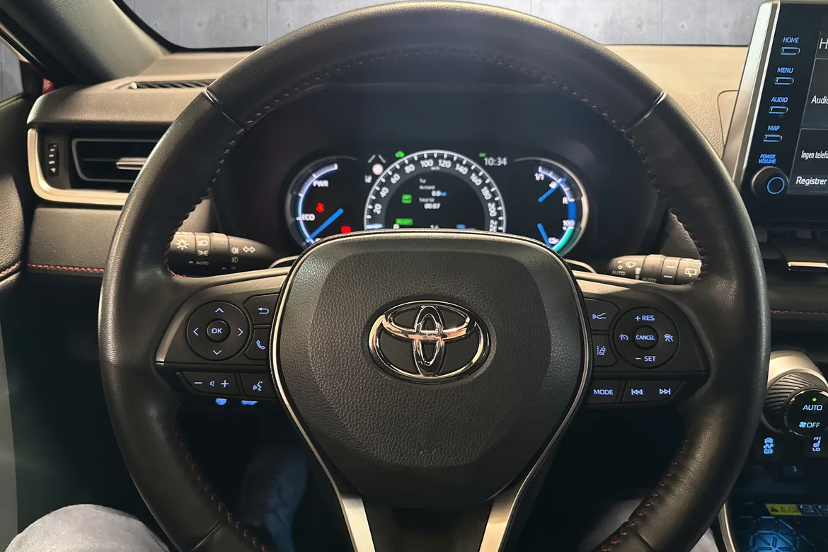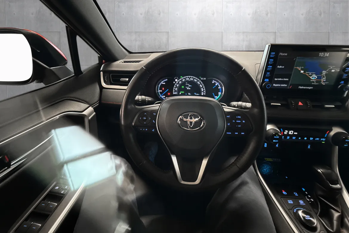 AutomatFlott Toyota RAV4 ladbar hybrid med inntil 75 km WLTP rekkevidde på strøm, god plass, firehjulstrekk, automat og 306 hk! Dette er en suksess oppskrift for Norske kunder. Pen metallic farge med mørke detaljer som passer bilen meget godt. Toyota RAV4 har et pent design, mye utstyr, samt trygge og gode kjøreegenskaper. Bilen har god bakkeklaring, og man sitter høyt og oversiktlig. RAV4 har god innvendig plass, og Toyota er kjent for sine driftssikre biler!