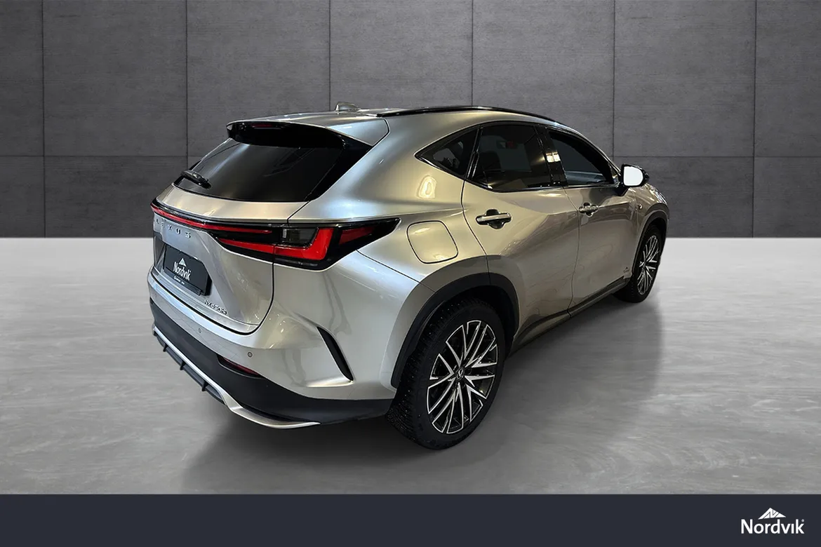 AutomatVi har nå for salg en meget pen utgave av Lexus NX 450h+ i topputgaven F Sport! Bilen har en kledelige farge, i komkombinasjon med flotte designelementer på interiør og eksteriør fra F Sport pakken! Lexus NX 450h+ er en ladbar hybrid med hele 74km WLTP rekkevidde, og du kan derfor gjøre mye av den daglige kjøringen kun på strøm. Bilen har svært gode og trygge kjøreegenskaper i kombinasjon med en kraftig motor på 309 hk, firehjulstrekk og god plass! Opplev gleden av å kjøre en premium bil som er kjent for sin driftsikkerhet og fornøyde kunder!