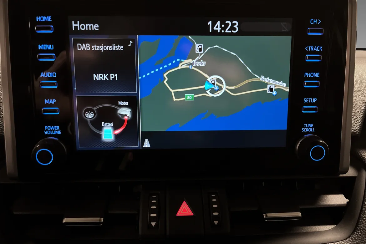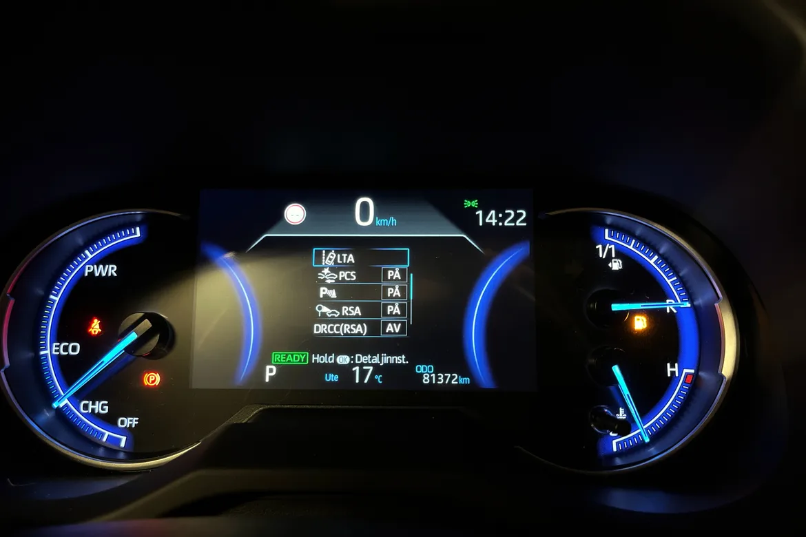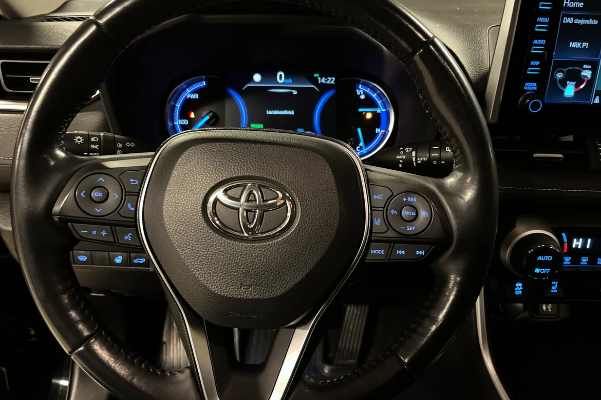 AutomatFlott Toyota RAV4 Hybrid AWD Active utstyrsmodell, god plass, firehjulstrekk, automat og 222 hk! Dette er en suksess oppskrift for Norske kunder. Pen Sort Metallic farge med mørke detaljer som passer bilen meget godt. Toyota RAV4 har et pent design, mye utstyr, samt trygge og gode kjøreegenskaper. Bilen har god bakkeklaring, og man sitter høyt og oversiktlig. RAV4 har god innvendig plass, og Toyota er kjent for sine driftssikre biler!