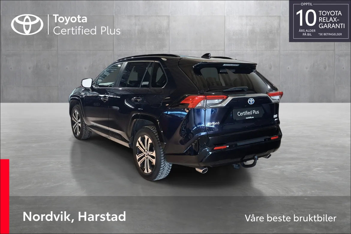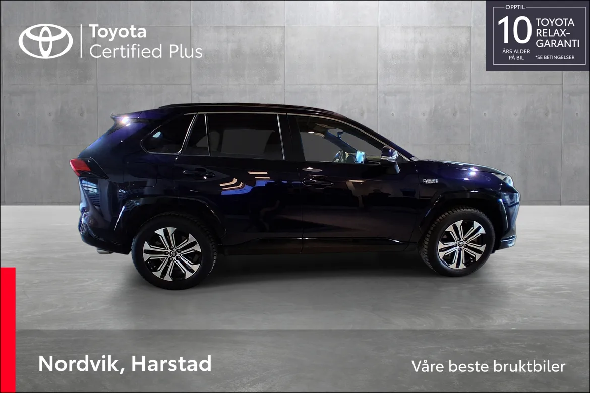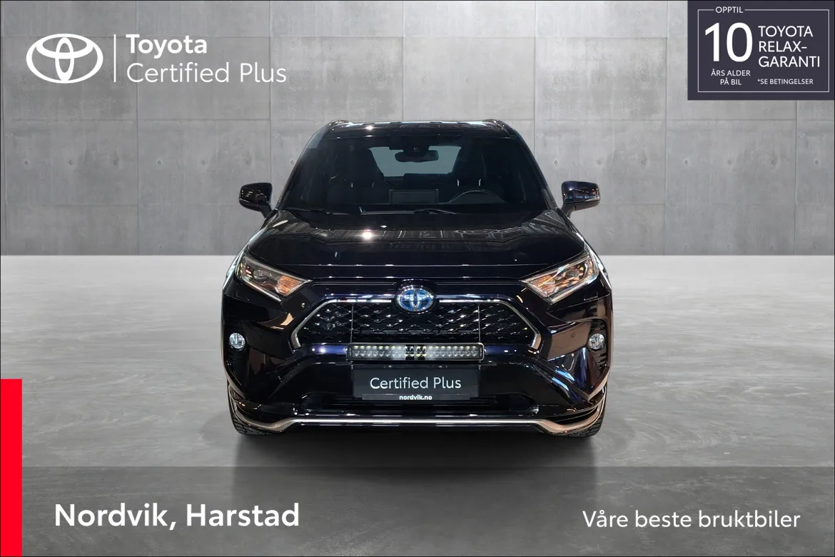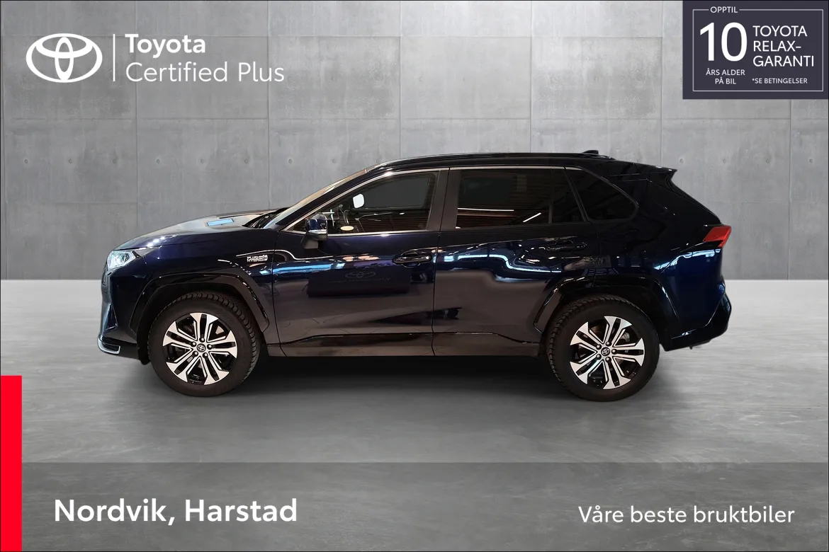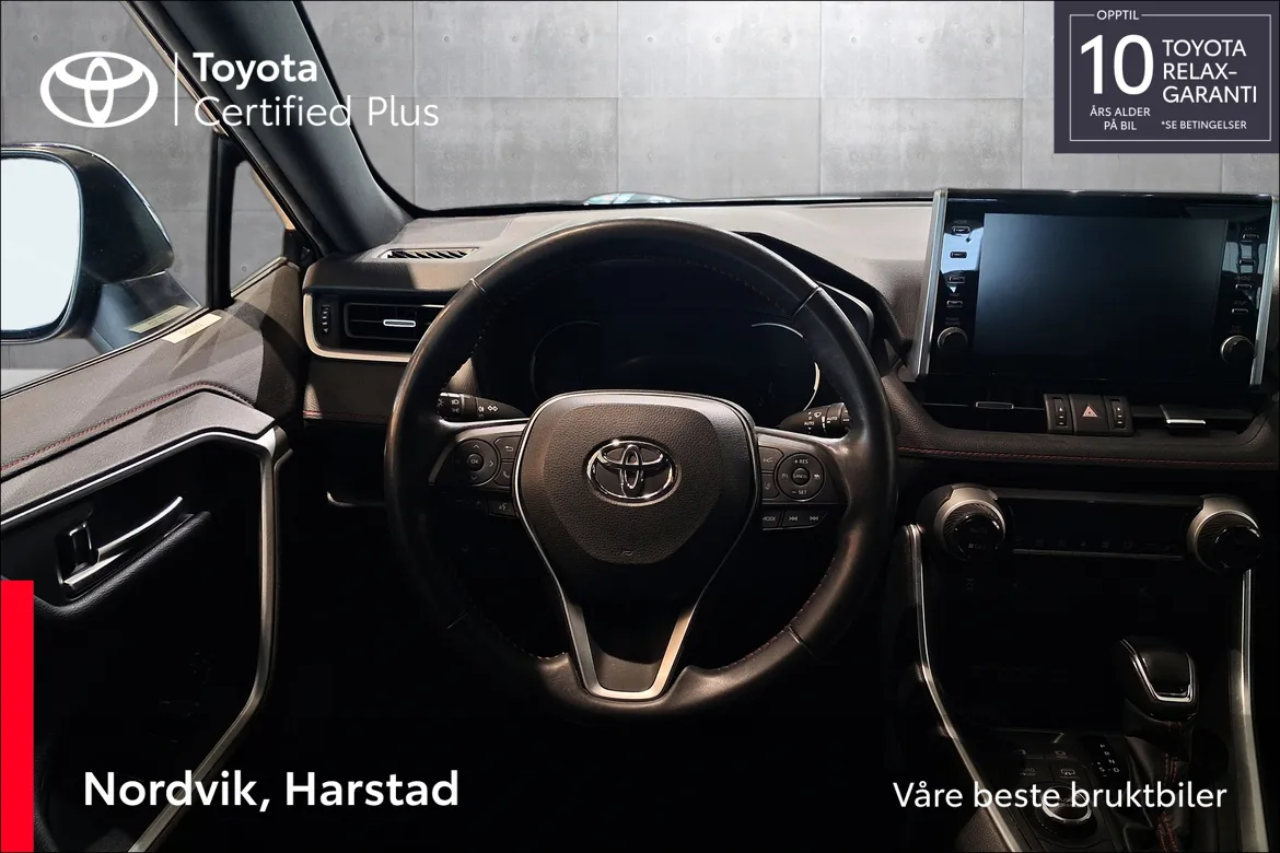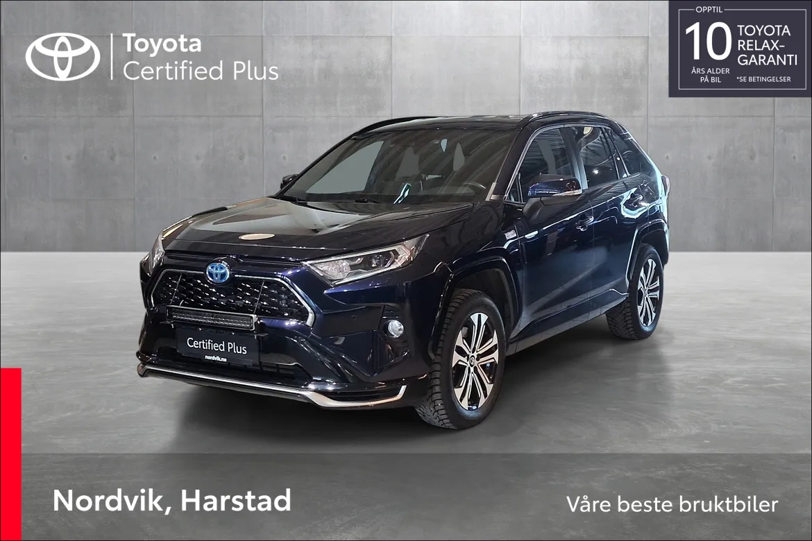 AutomatFlott Toyota RAV4 ladbar hybrid med inntil 75 km WLTP rekkevidde på strøm, god plass, firehjulstrekk, automat og 306 hk! Dette er en suksess oppskrift for Norske kunder. Pen metallic farge med mørke detaljer som passer bilen meget godt. Toyota RAV4 har et pent design, mye utstyr, samt trygge og gode kjøreegenskaper. Bilen har god bakkeklaring, og man sitter høyt og oversiktlig. RAV4 har god innvendig plass, og Toyota er kjent for sine driftssikre biler!