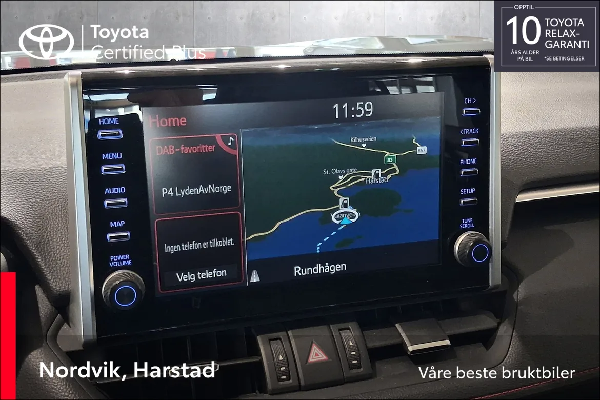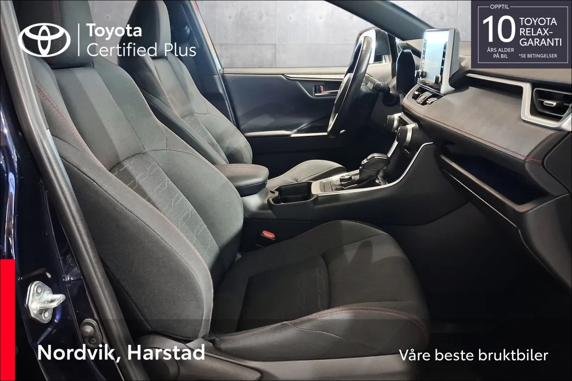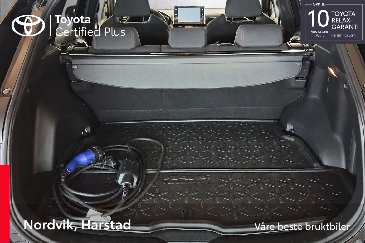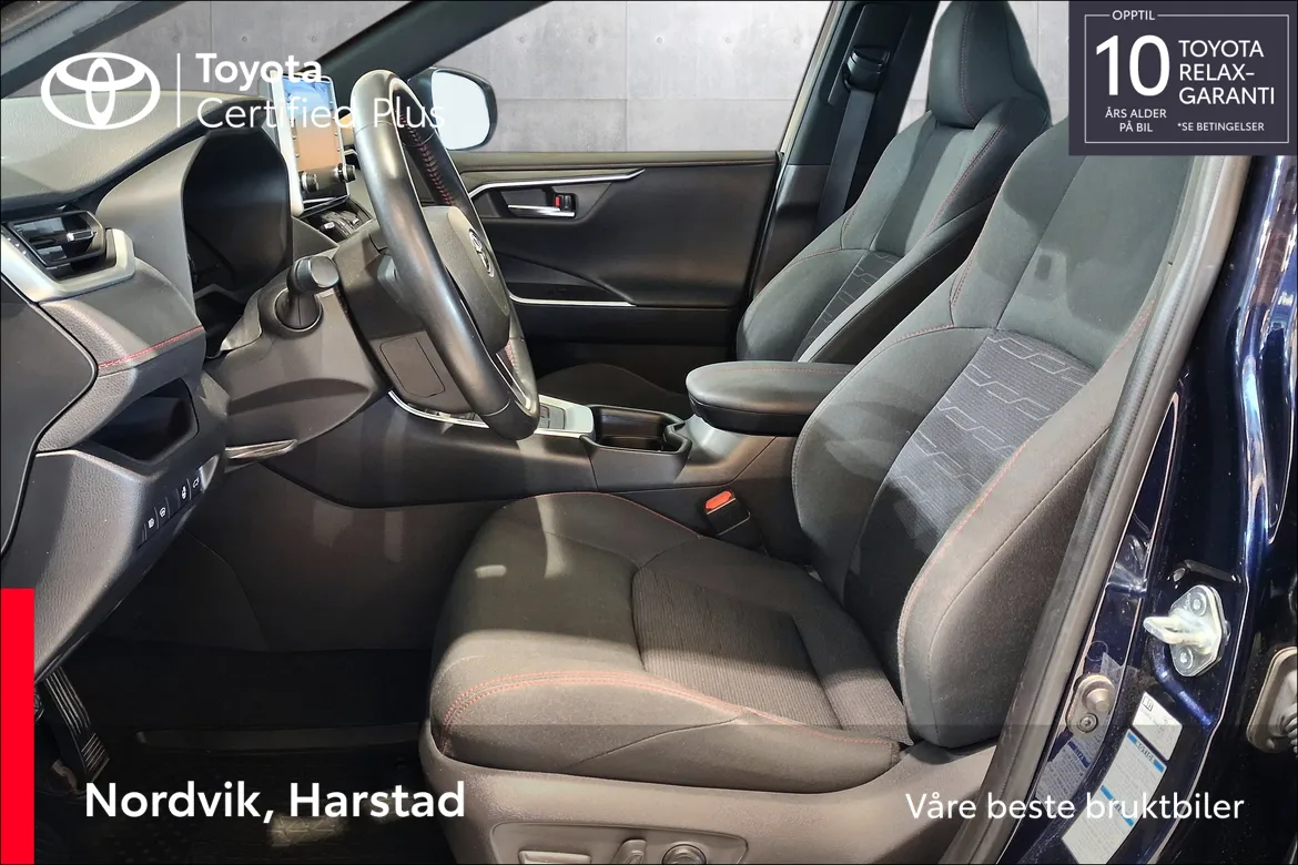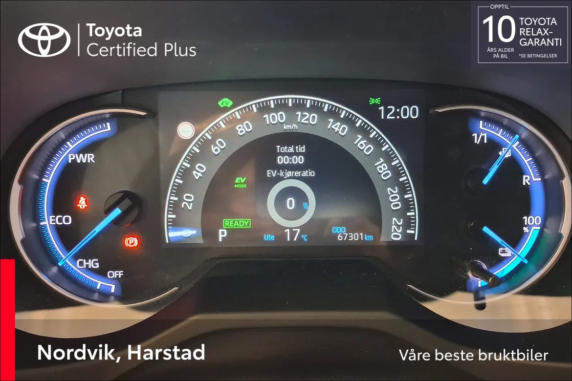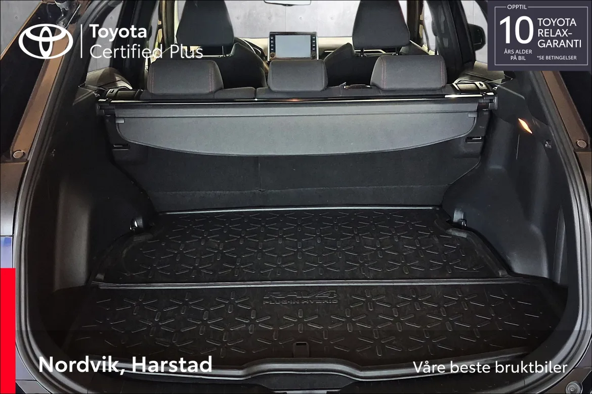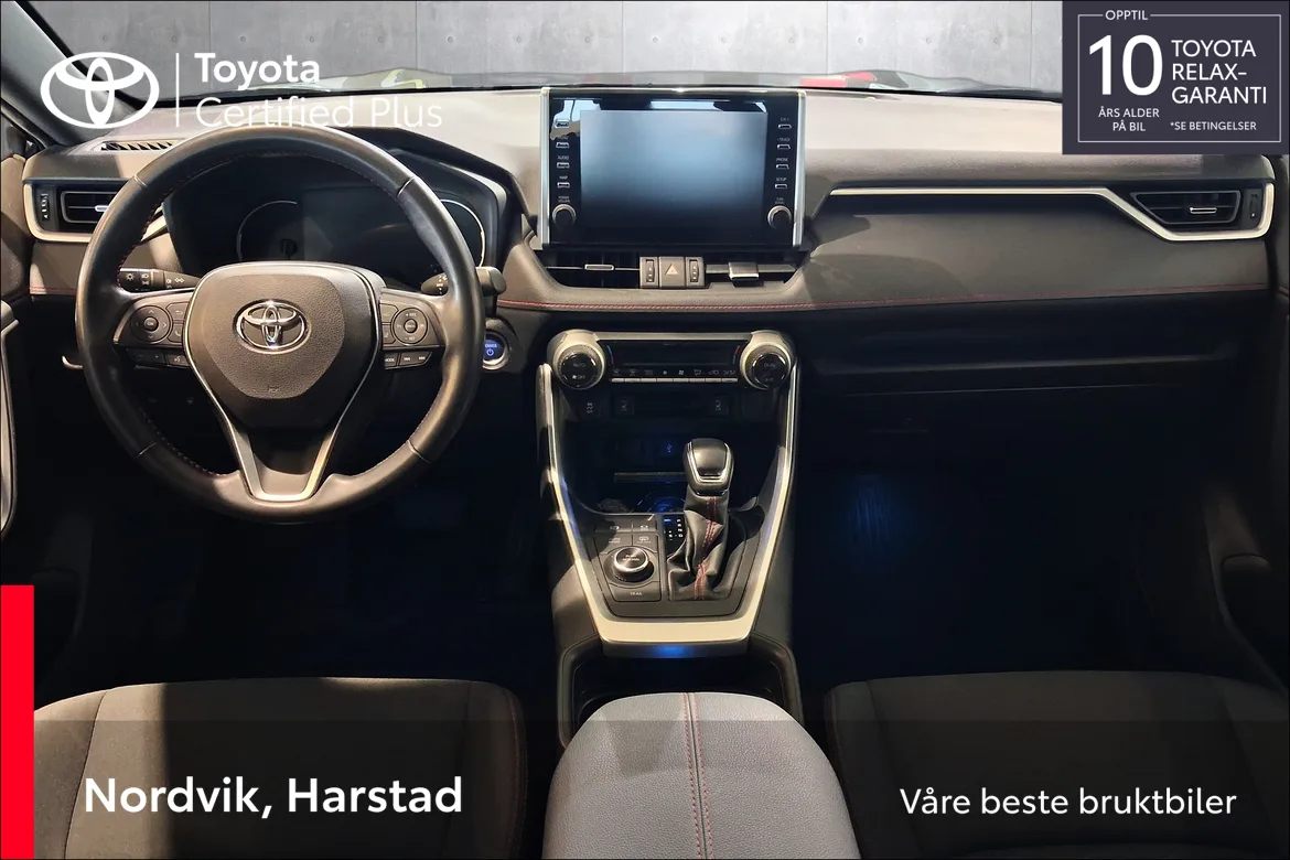 AutomatFlott Toyota RAV4 ladbar hybrid med inntil 75 km WLTP rekkevidde på strøm, god plass, firehjulstrekk, automat og 306 hk! Dette er en suksess oppskrift for Norske kunder. Pen metallic farge med mørke detaljer som passer bilen meget godt. Toyota RAV4 har et pent design, mye utstyr, samt trygge og gode kjøreegenskaper. Bilen har god bakkeklaring, og man sitter høyt og oversiktlig. RAV4 har god innvendig plass, og Toyota er kjent for sine driftssikre biler!