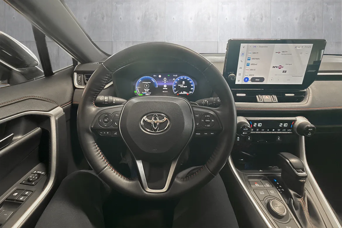 AutomatFlott Toyota RAV4 ladbar hybrid med inntil 75 km WLTP rekkevidde på strøm, god plass, firehjulstrekk, automat og 306 hk!