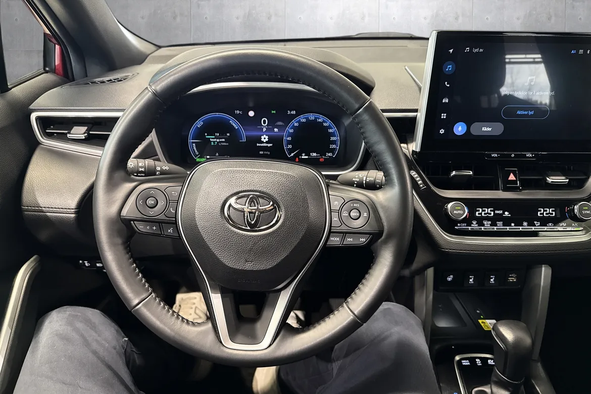 AutomatMeget flott Toyota Corolla Cross med pen design og god plass. Corolla representerer en av verdens mest kjente varemerker i bilindustrien, og du får den her i en høyreist utgave med firehjulstrekk! Toyota Corolla Cross Hybrid er en romslig og praktisk SUV som kombinerer Corollas pålitelighet med en effektiv hybrid drivlinje.
