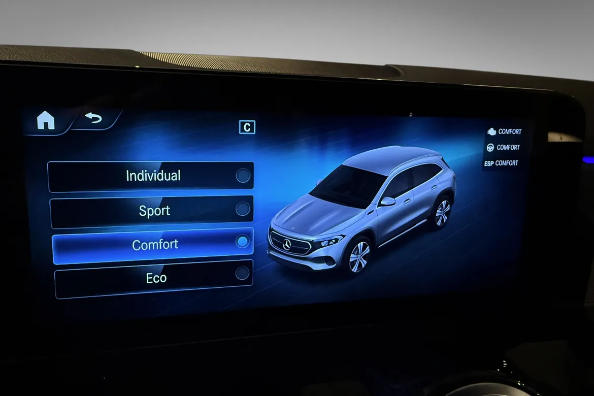 EQA 300 leverer sterke ytelser med to elektriske motorer og rask respons, samtidig som den byr på stillegående og komfortabel fremdrift. Bilen har tilhengerfeste og kan trekke 1800 kg.