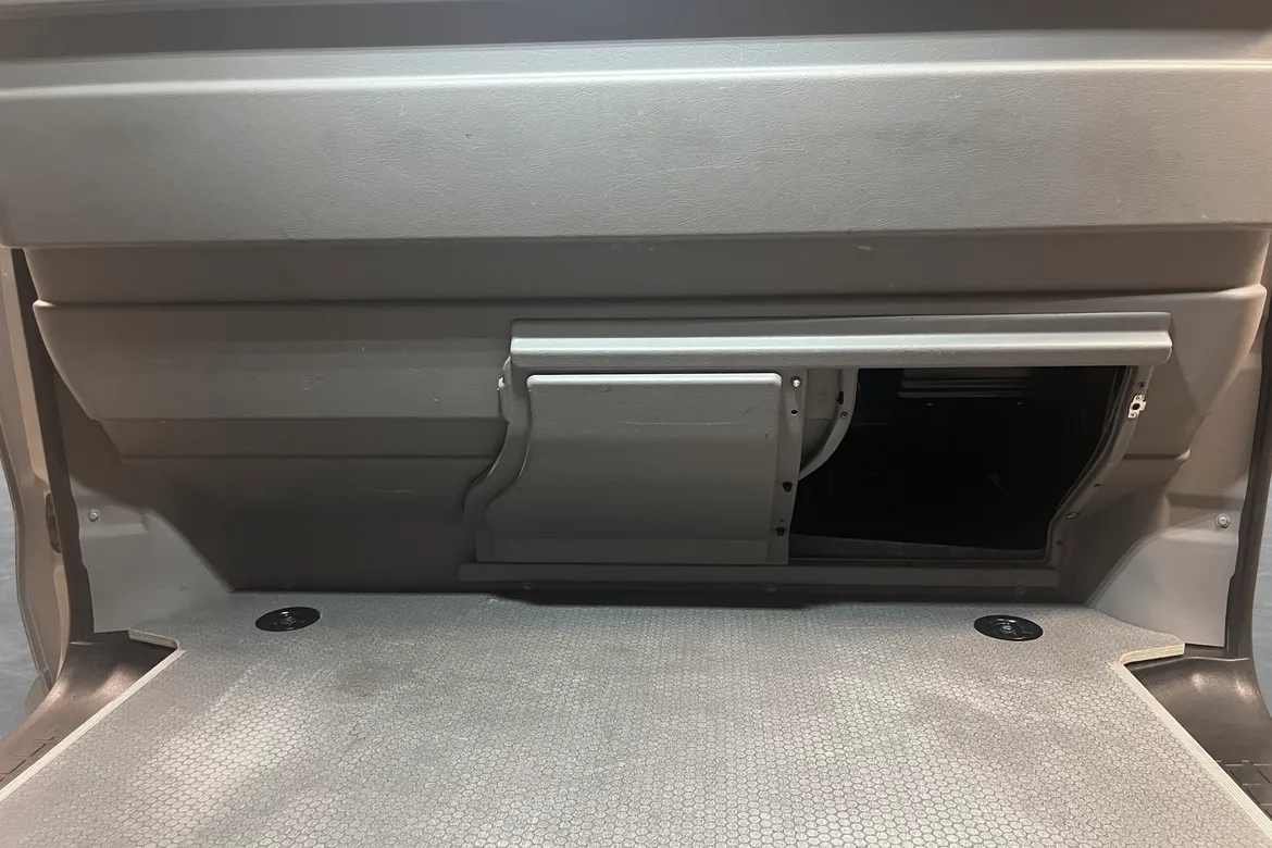 Denne har skyvedører på begge sider samt topp-hengslet bakluke.