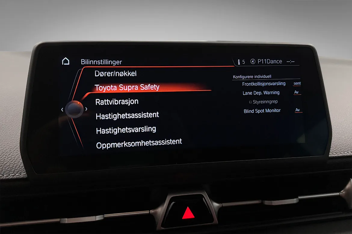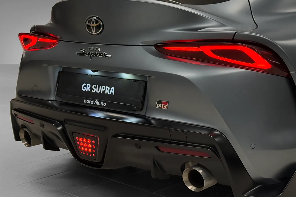 8-trinns AutomatSjelden sjanse til å skaffe seg denne ekstremt flotte Toyota Supra A90 i Premium utstyrsgrad. Bilen er like fantastisk å se på som den er å kjøre, spesifisert med Storm Grey mattlakk, 19" matte aluminiumfelger og et slående kupéinteriør trukket med skinn i rødt. Bilen har i al hovedsak stått lagret inne i vårt Toyota anlegg siden ny. Derav har denne bilen også en svært lav kilometerstand. Den har ikke vært i bruk på vinteren.