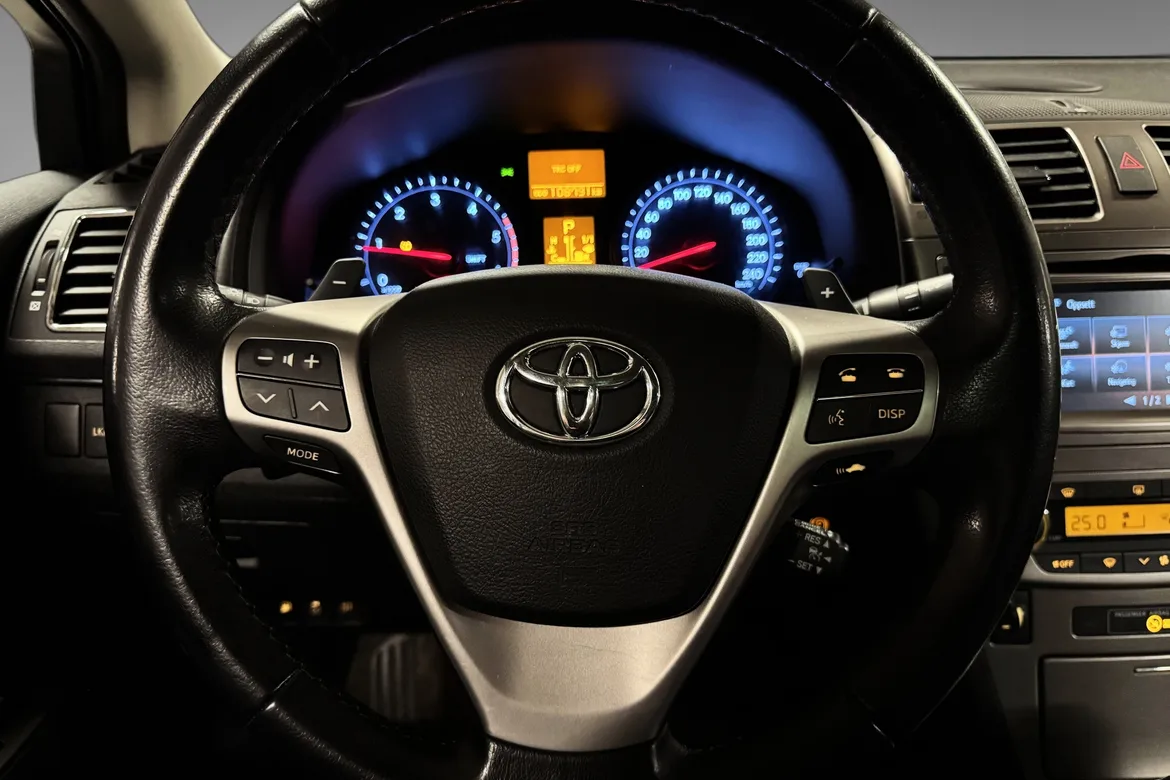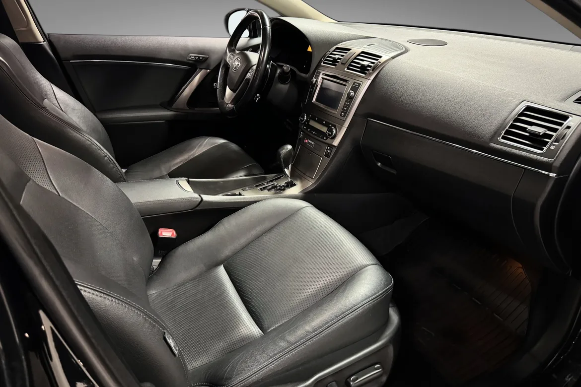 Toyota Avensis har et tidløst design, denne bilen har en kledelig sort metallic lakk. Interiøret er godt holdt med sorte og grå stoffseter. 2.2 dieselmotoren er kjent for godt dreiemoment, lavt forbruk på langkjøring og solid driftssikkerhet. Den gir komfortabel fremdrift både i bytrafikk og på motorvei. Bagasjerommet har en kapasitet på hele 543l.