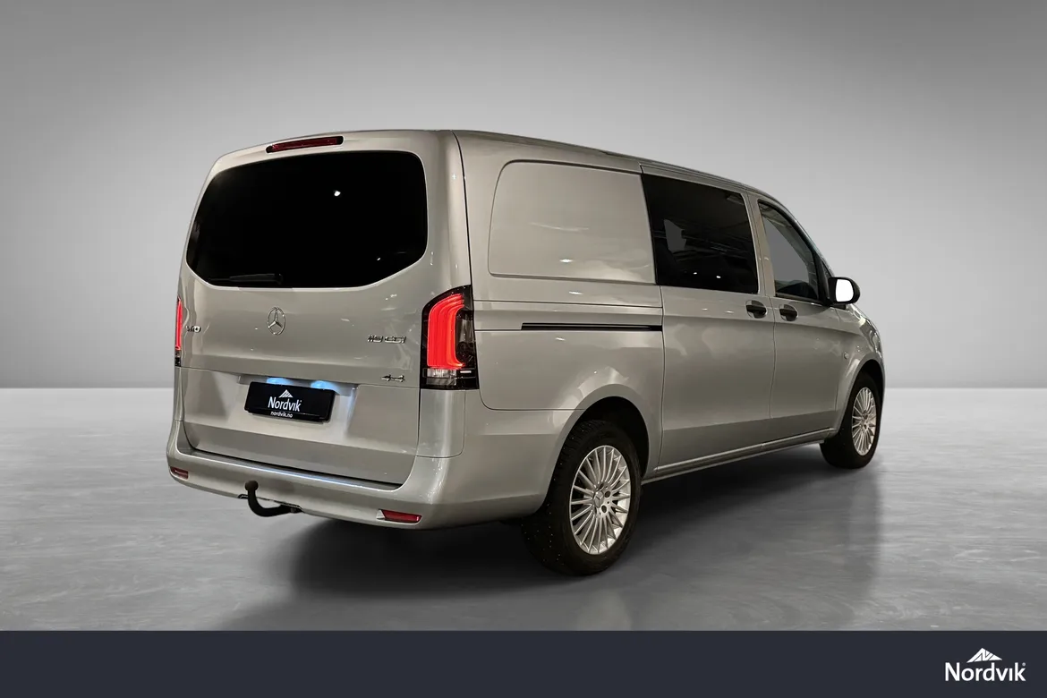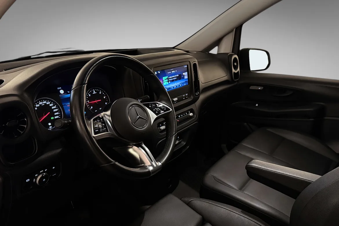 AutomatFlott og velutstyrt Mercedes-Benz Vito 119 CDI 4x4 i facelift utgave – en perfekt varebil for både arbeid og fritid. Denne modellen kombinerer kraftig motor, firehjulstrekk og høy komfort, noe som gjør den ideell for norske forhold året rundt. Facelift utgaven er oppdater både innvendig og utvendig, og hvor du blant annet får nye Multibeam LED frontlykter, samt kraftig oppgradert interiør med MBUX infotainment system.
