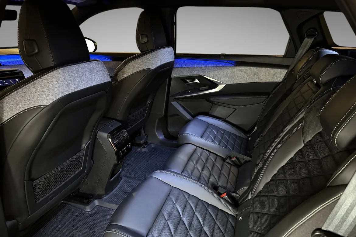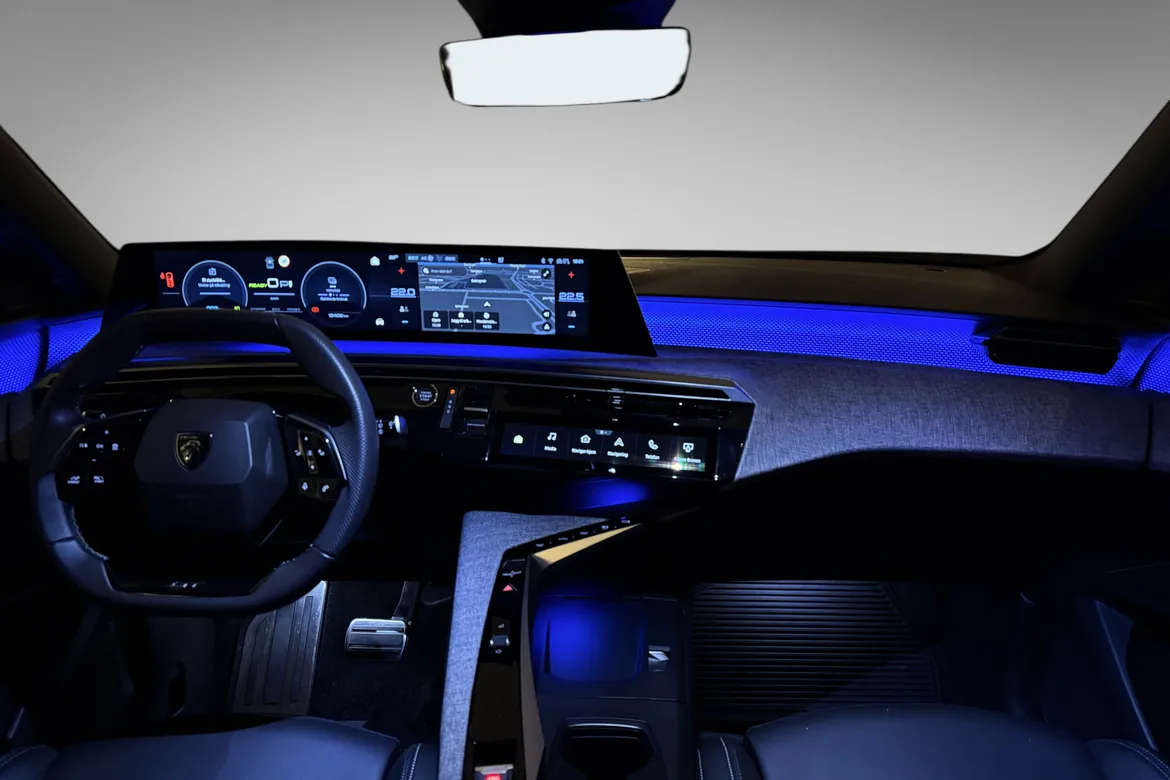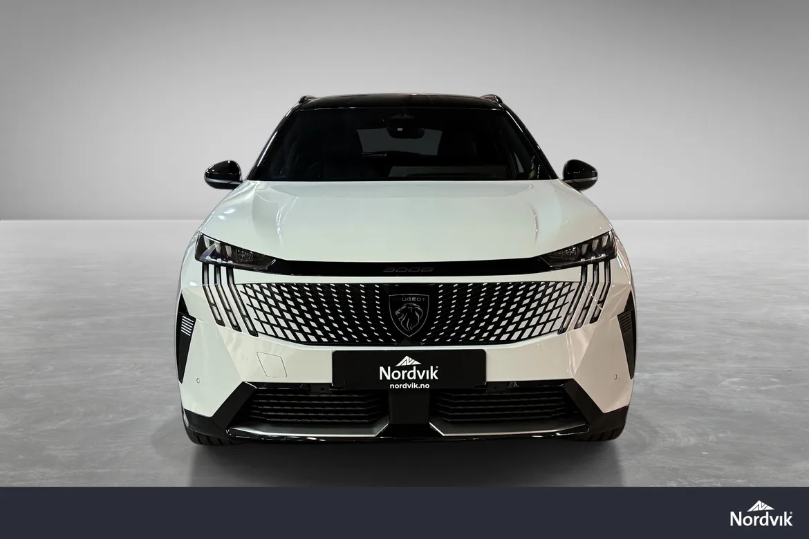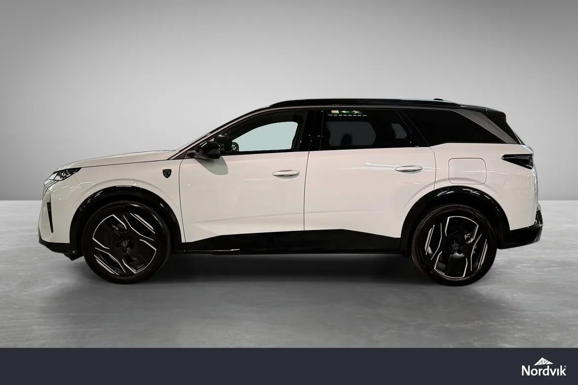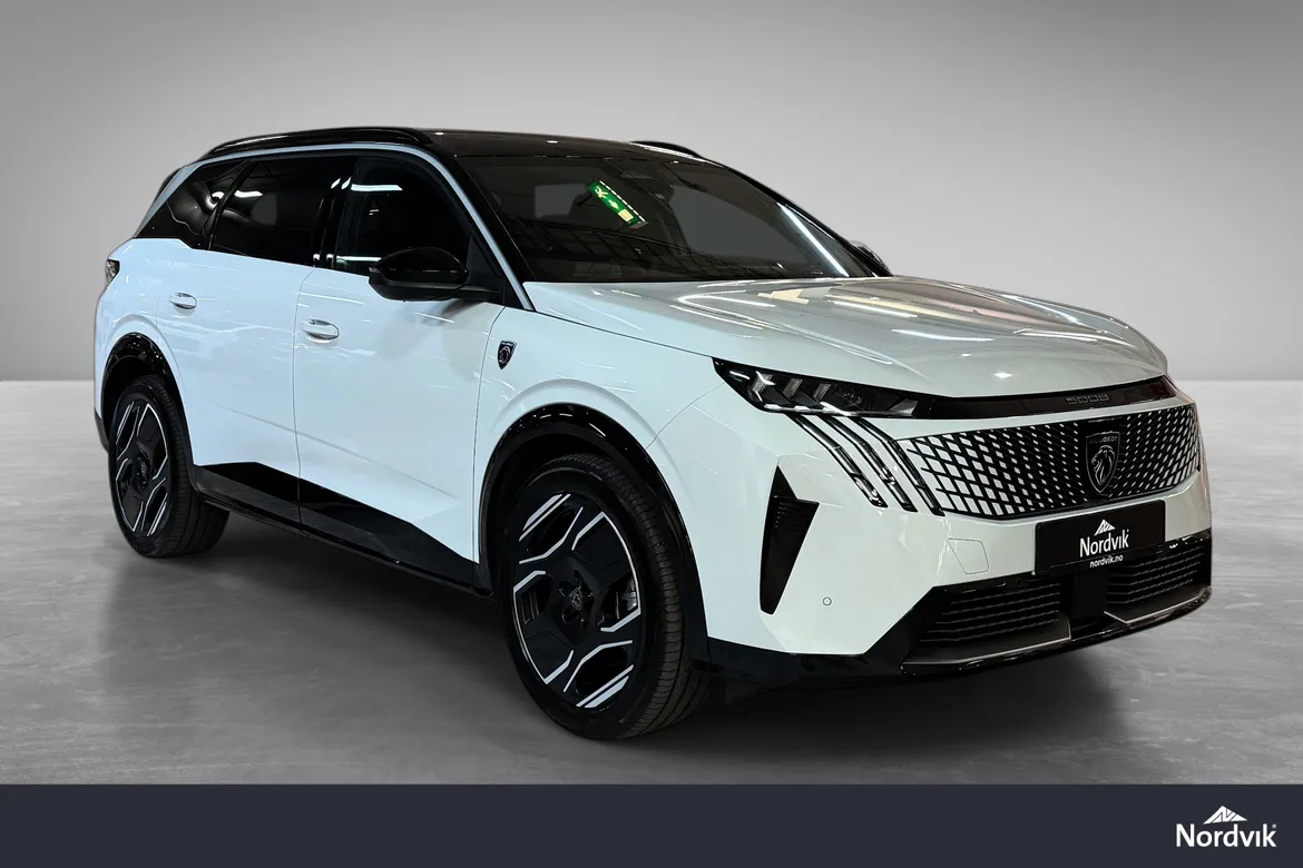 AutomatPeugeot E-5008 GT representerer en helt ny generasjon elektriske familiebiler med fokus på komfort, plass og moderne teknologi. GT-modellen byr på høyt utstyrsnivå, gjennomført interiør, en stor buet i-Cockpit-skjerm og nydelige designlinjer som skiller seg tydelig fra konkurrentene. Nydelig farge kombinasjon med hvit metallic i kombinsjon med sort tak, mørke felger, mørke ruter og sorte eksteriørdetaljer.