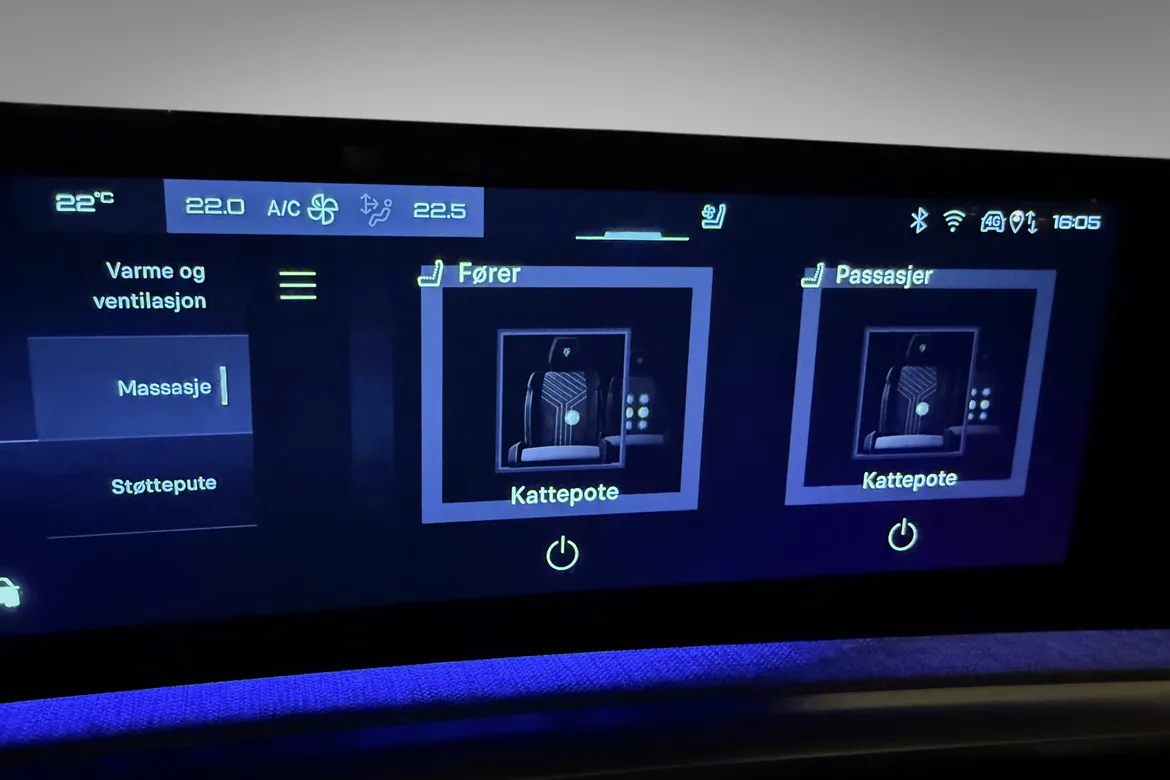 • Massasjestoler med varme/kjøling foran i nappa skinn