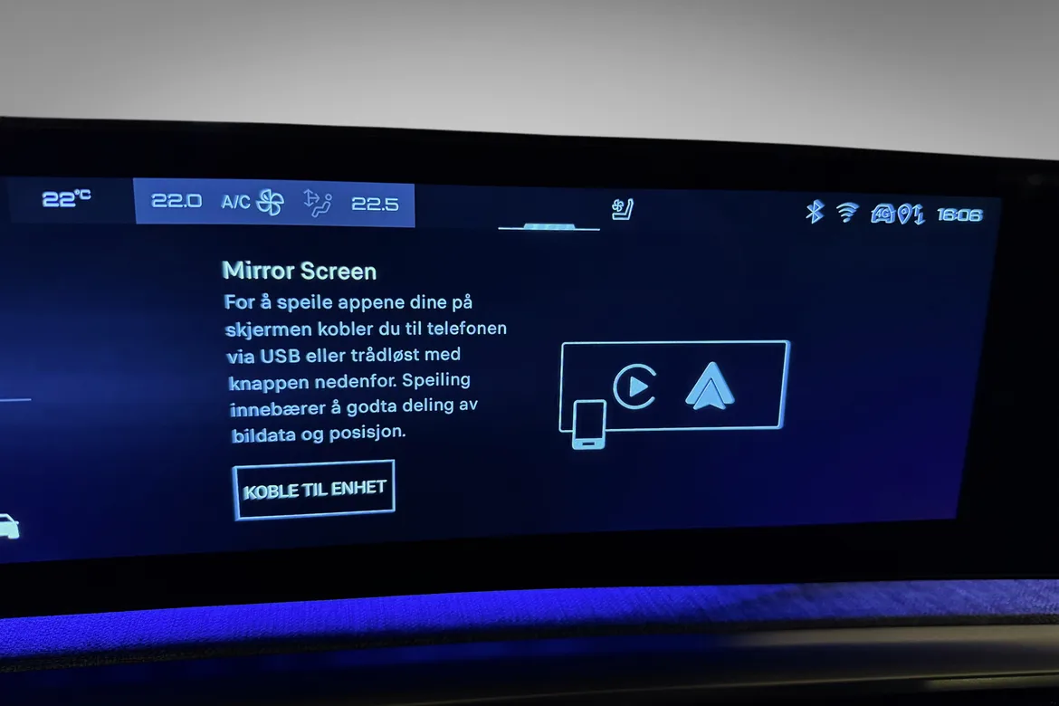 • Navigasjon, CarPlay og Android Auto