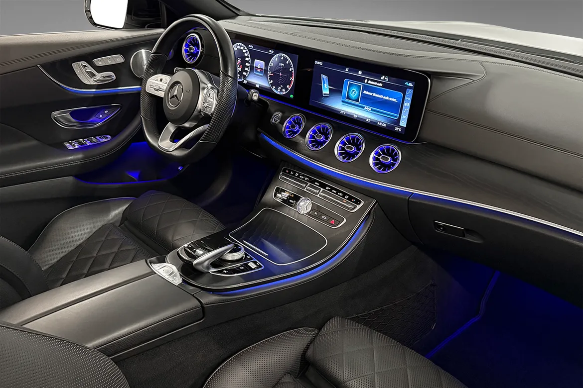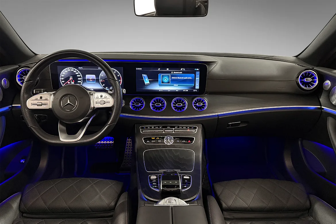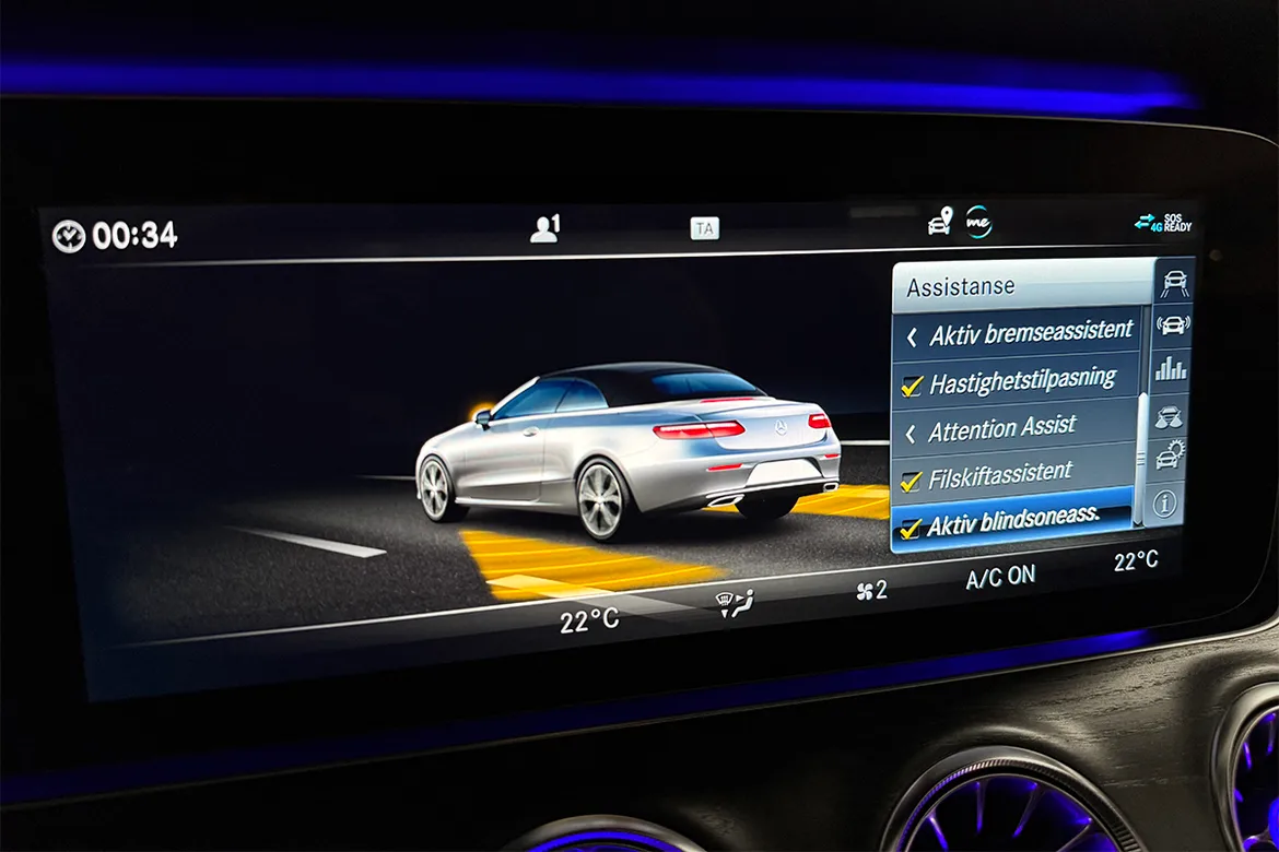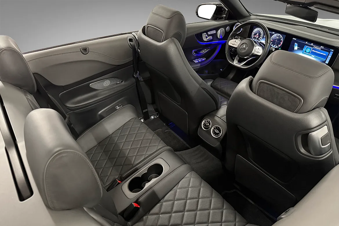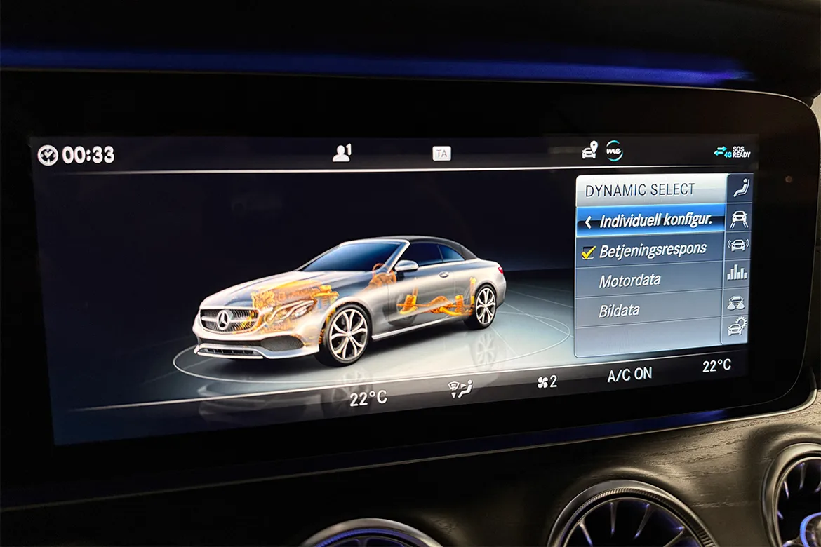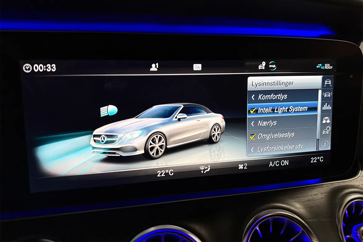 AutomatVi har nå fått inn en sjeldent pen Mercedes-Benz E300 cabriolet med lav kilometerstand. Her er det krysset av for alle de riktige tilvalgene på utstyrslisten! Som det fremgår av bildene har bilen har en svært flott design både innvendig og utvendig. AMG styling pakke, Designo nappa skinnseter, Black Ash wood listverk og 20" AMG felger, samt en klassisk stilren fargekombinasjon gjør dette til en særdeles lekker cabriolet. Denne bilen er utstyrt med en kraftig turbomotor på 245 hk som passer denne bilen veldig godt.