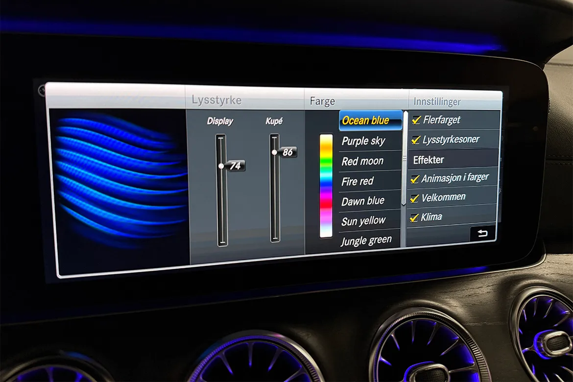 Utstyr som kan fremheves på denne bilen: