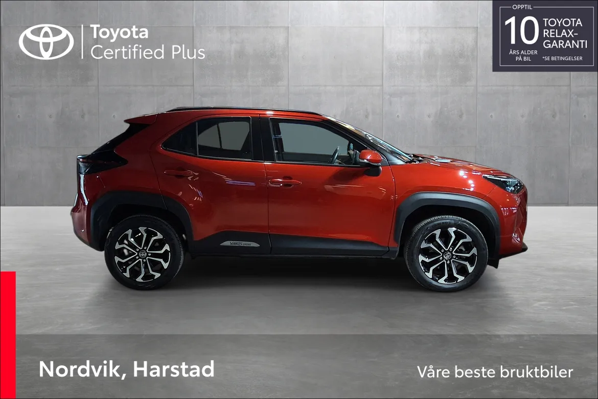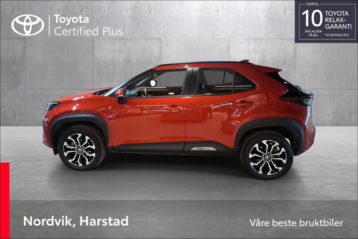 Toyota Yaris Cross er en kompakt SUV som kombinerer et flott design med ekte SUV-egenskaper. Den forhøyede sittestillingen og romslige kupéen gir deg god oversikt over veien og en komfortabel kjøreopplevelse i hverdagen.