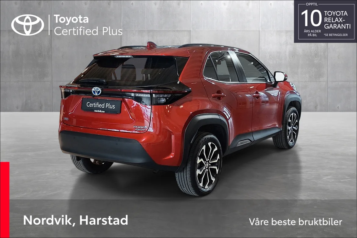 Denne utgaven i Active-versjon byr på moderne komfort og smarte løsninger. Yaris Cross er smidig og lettmanøvrert i byen, samtidig som hybriddrivlinjen og firehjulstrekk-teknologien (AWD-i) gir deg trygghet og fremkommelighet på krevende føre. Her får du en liten bil med store egenskaper – perfekt for både bykjøring og helgeturer med trygge og gode kjøreegenskaper. De gangene du trenger mer plass til større ting, kan baksetene legges raskt ned.
