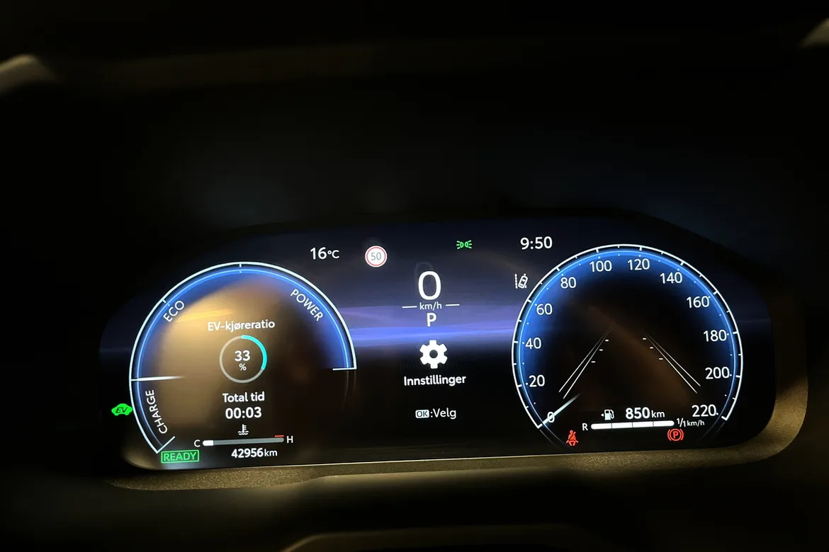 Hybrid (ikke plug-in) lades automatisk under kjøring, ingen behov for ladekabel