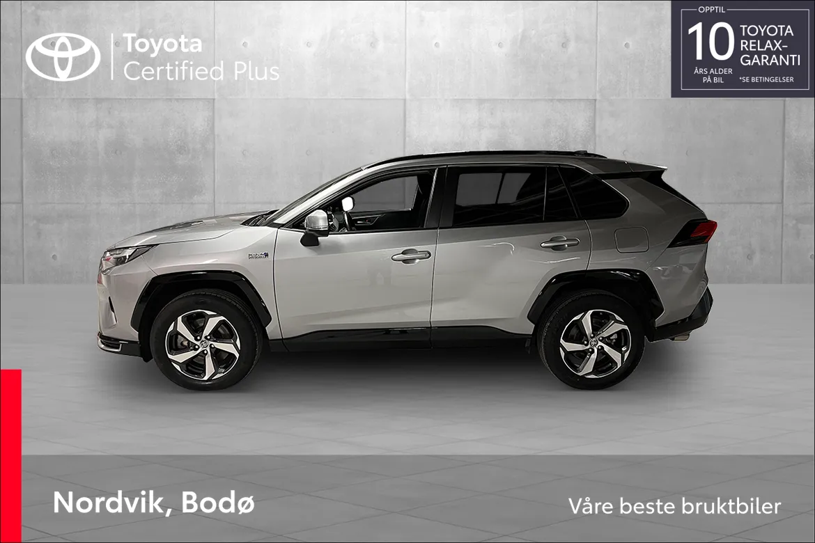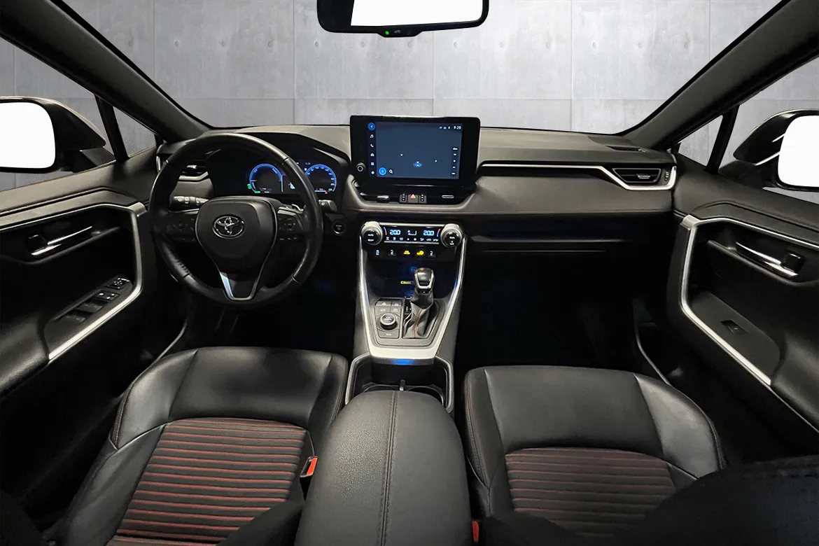 AutomatFlott Toyota RAV4 ladbar hybrid med inntil 75 km WLTP rekkevidde på strøm, god plass, firehjulstrekk, automat og 306 hk! Dette er en suksess oppskrift for Norske kunder. Pen metallic farge med mørke detaljer som passer bilen meget godt. Toyota RAV4 har et pent design, mye utstyr, samt trygge og gode kjøreegenskaper. Bilen har god bakkeklaring, og man sitter høyt og oversiktlig. RAV4 har god innvendig plass, og Toyota er kjent for sine driftssikre biler!
