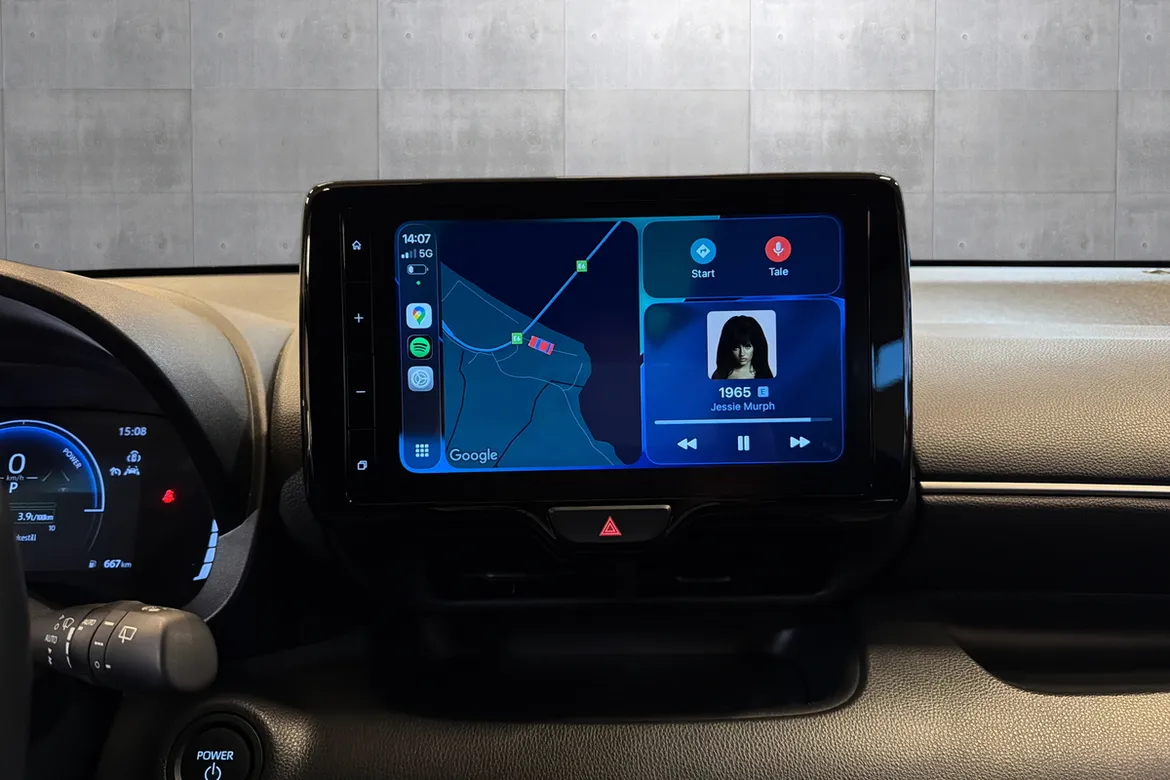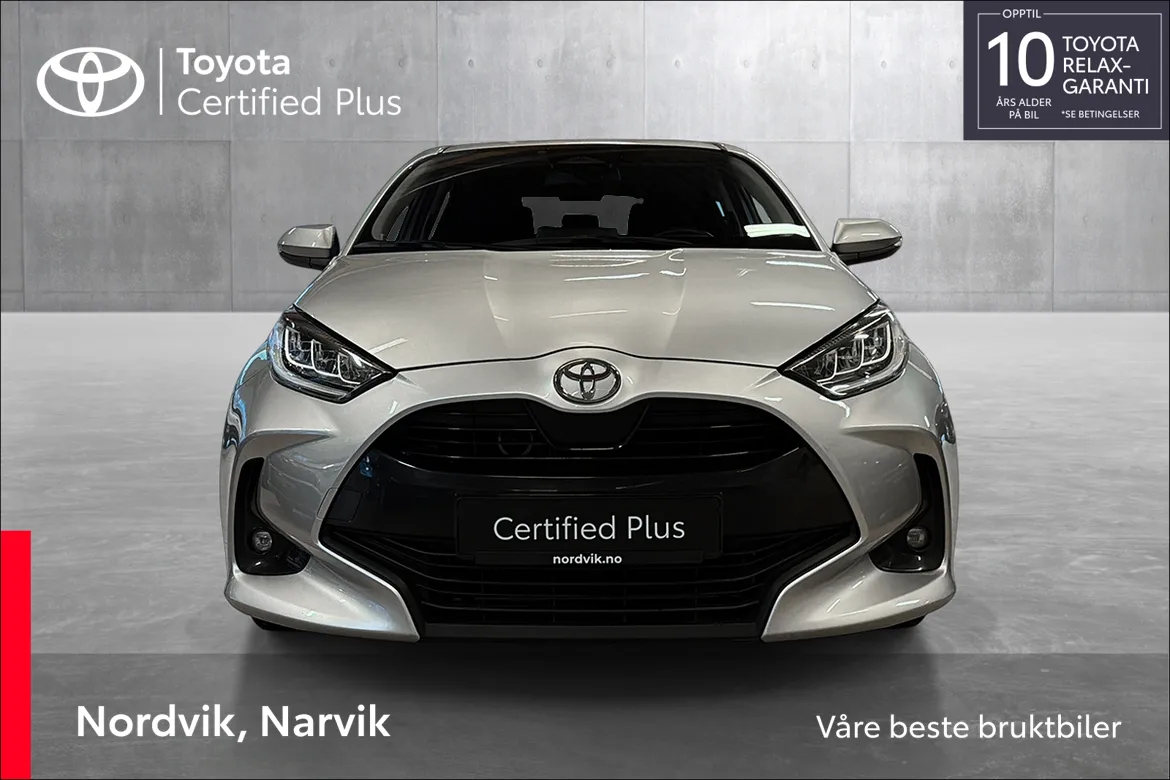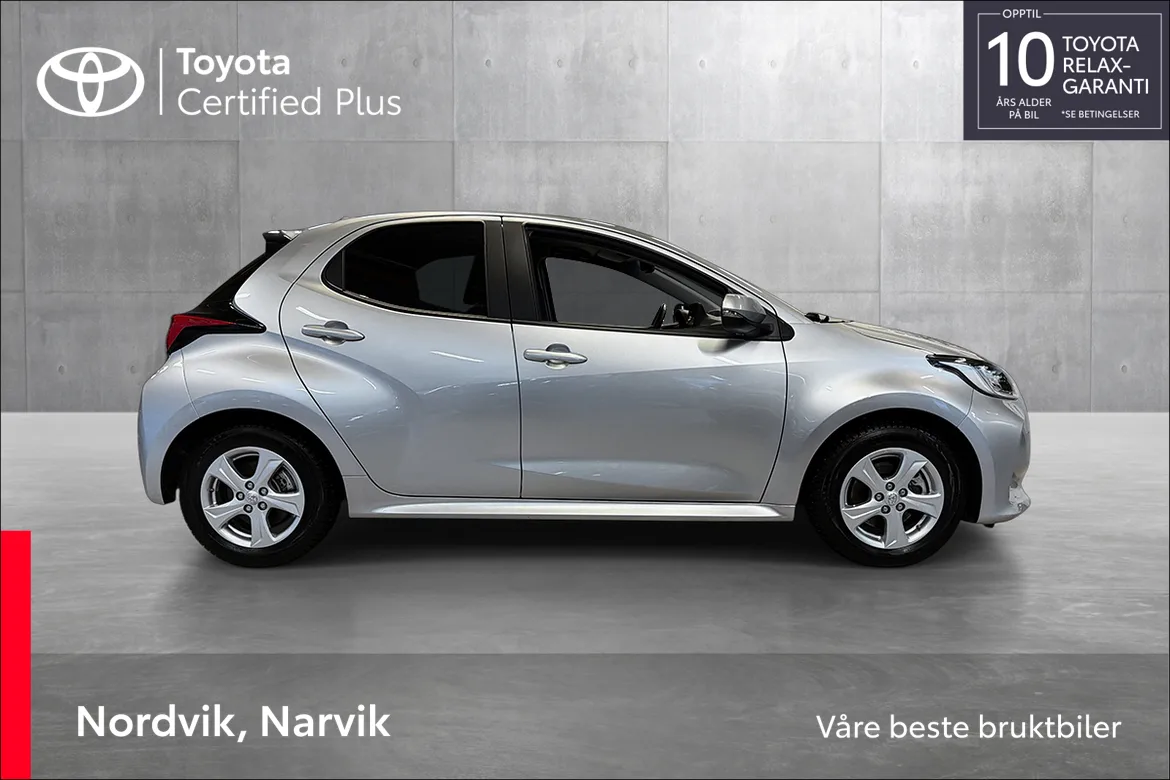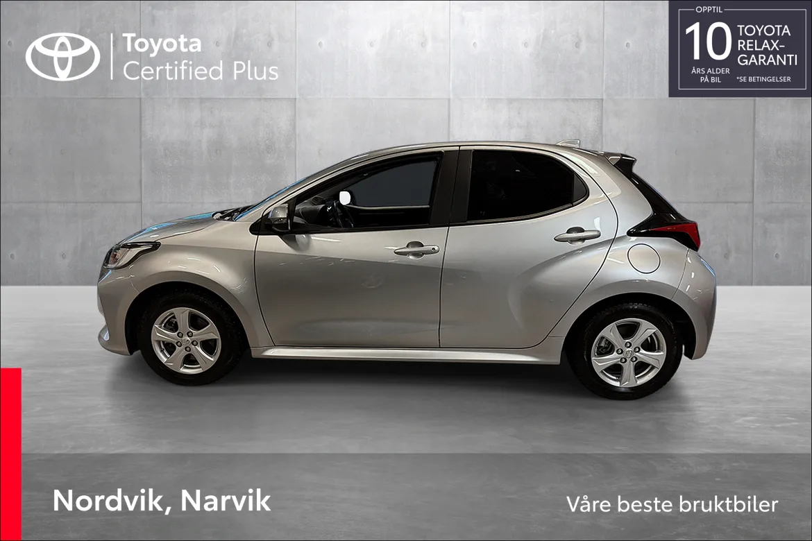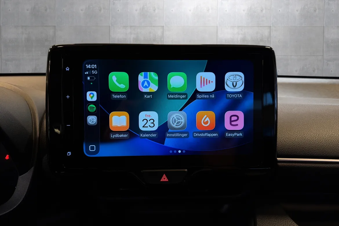 AutomatFin Yaris i sølv metallic med varme i rattet og mulighet for tilkobling av Apple CarPlay og Android Auto!