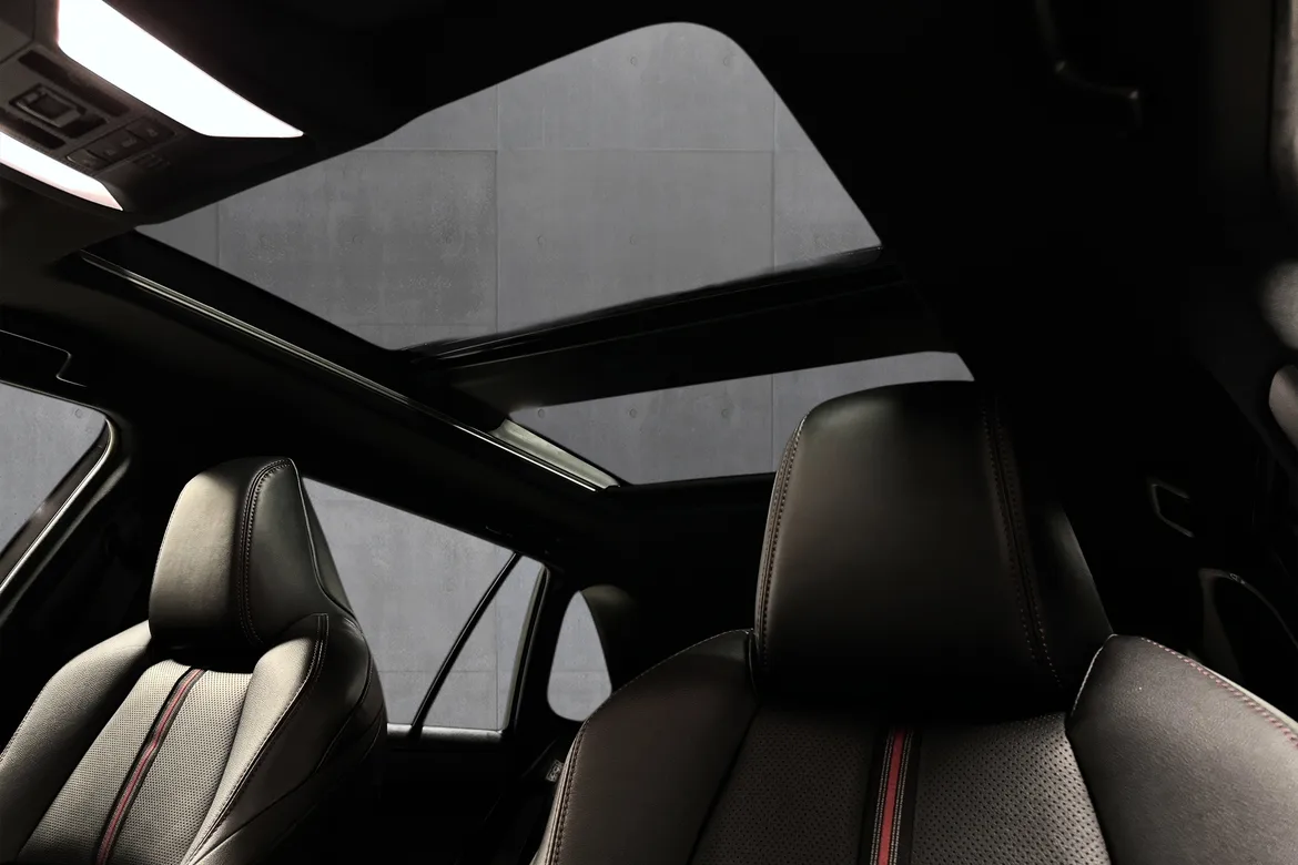 Dette topp modellen og den har flotte 19`alufelger, LED nær og fjernlys med automatisk høydejustering, sportsseter, skinntrukket sportsratt, hjulbuer i sort og mange andre spennende detaljer som er med på å fremheve det sportslige designet