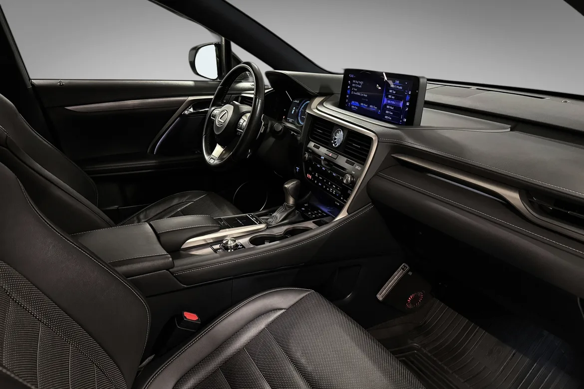 AutomatVelholdt Lexus RX450h fra 2019 – facelift modell og topputgaven F SPORT S. Denne bilen kombinerer kraft, komfort og luksus, og har en meget kledelig fargekombinasjon. Dette er en bil med en utrolig "totalkomfort". Her får du deilig fjæring, lavt støynivå, raffinert drivlinje, gode seter både foran og bak, samt god plass. RX har en avslappende atomsfære og er overraskende lettkjørt i dette bilsegmentet..