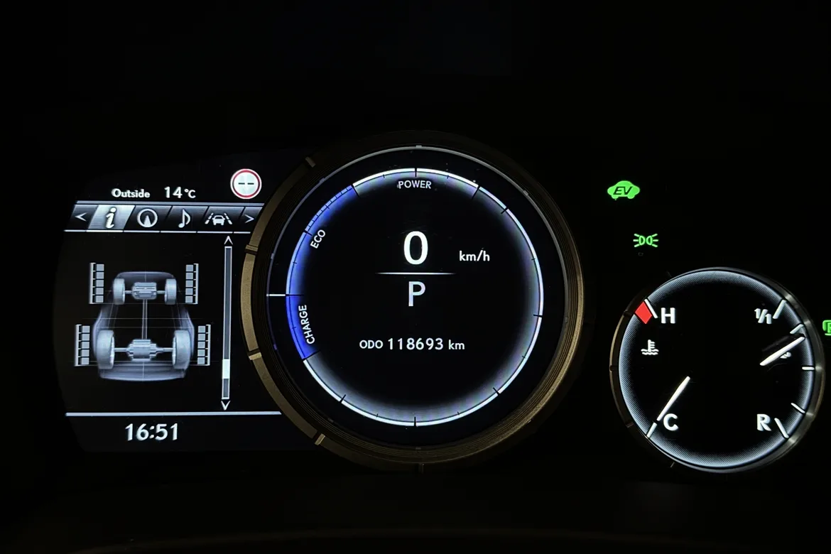RX 450h kommer med Lexus sin banebrytende selvladende hybridteknologi som intelligent kombinerer en 3.5-liters V6 bensinmotor med to elektriske motorer og overfører kreftene til alle fire hjul. Ved lavere hastigheter vil RX 450h ofte velge å kjøre kun på strøm, altså nær sagt helt stille, uten utslipp og forbruk. Når motoren er i gang gir den fra seg en deilig V6 lyd som appellerer til den bilinteresserte. Hybridbatteriet trenger aldri å lades og tar opp minimalt med plass, noe som gir sjenerøst med bagasjeplass. Sist, men ikke minst vil du bli imponert over hvor lite det koster å drifte og følge serviceprogrammet til din RX 450h sammenlignet med konvensjonelle luksus-SUV-er.