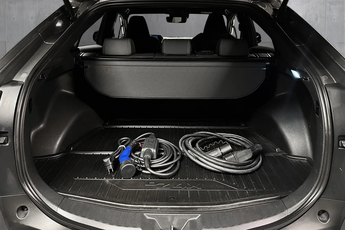 Bilen byr på god innvendig plass, samt høy nyttelast for bilklassen. Det første man merker når man setter seg inn i en Toyota bZ4X er de helt fantastisk deilige setene denne bilen har. Myke, men med god støtte og gode innstillingsmuligheter.