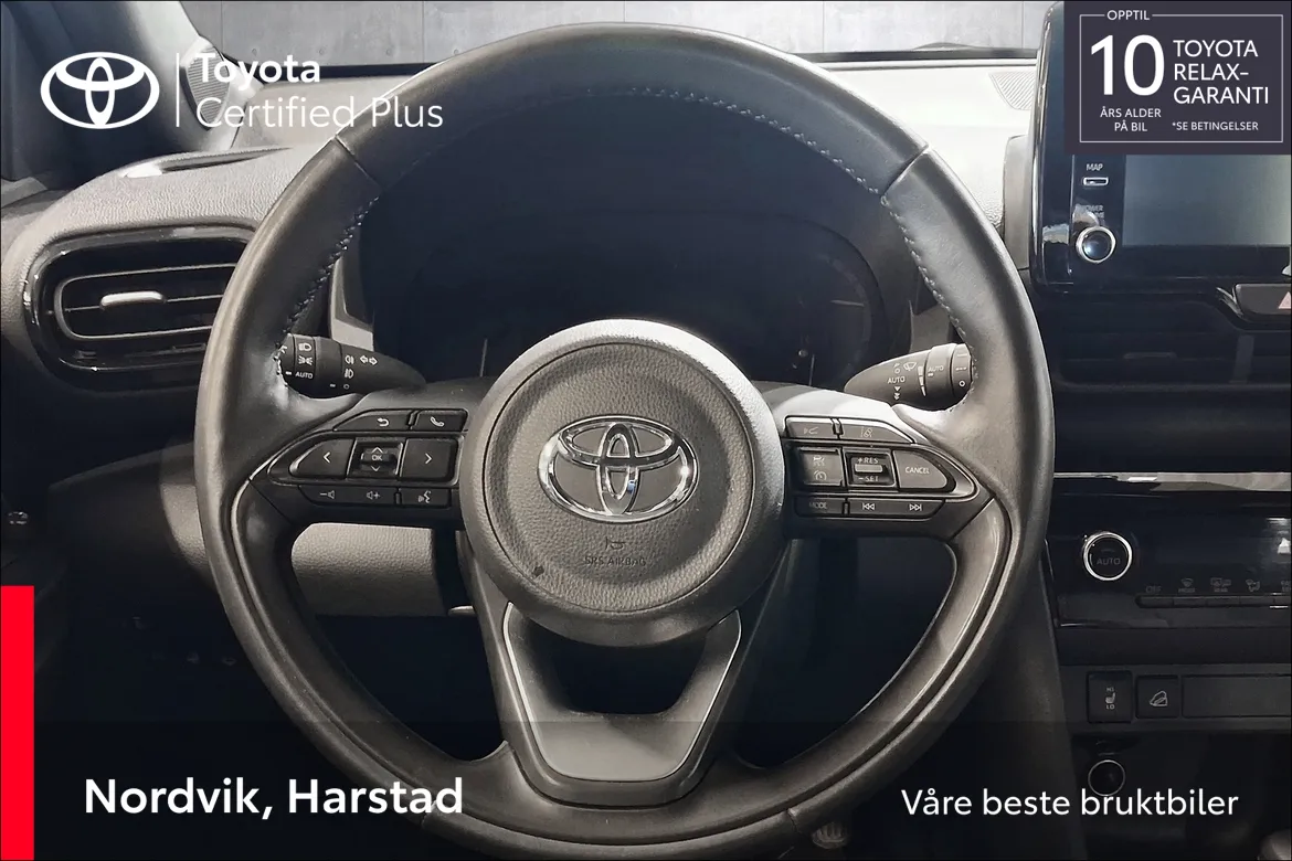 Toyota Yaris Cross er en kompakt SUV som kombinerer et flott design med ekte SUV-egenskaper. Den forhøyede sittestillingen og romslige kupéen gir deg god oversikt over veien og en komfortabel kjøreopplevelse i hverdagen.
