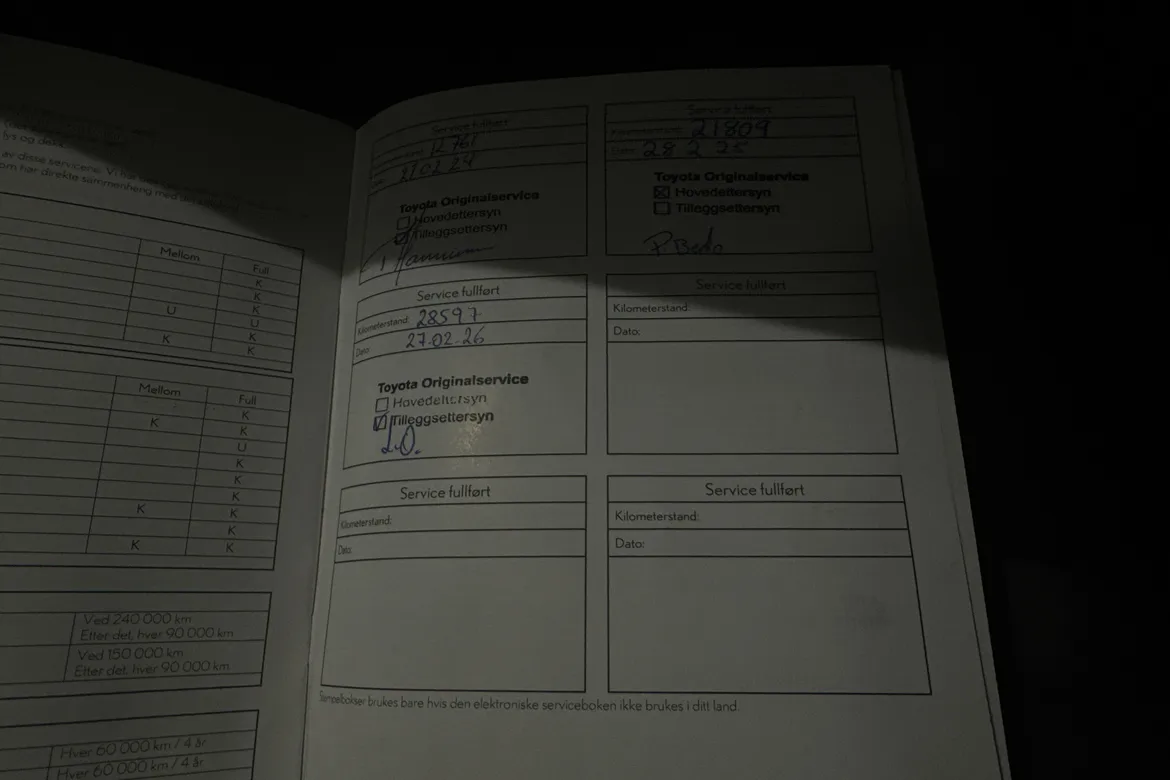 Bilens serviceprogram er fulgt. Bilen har fått service i henhold til fabrikkens retningslinjer.