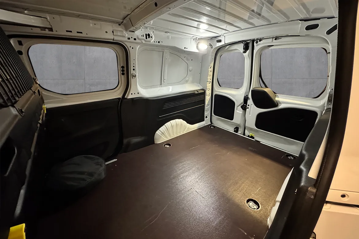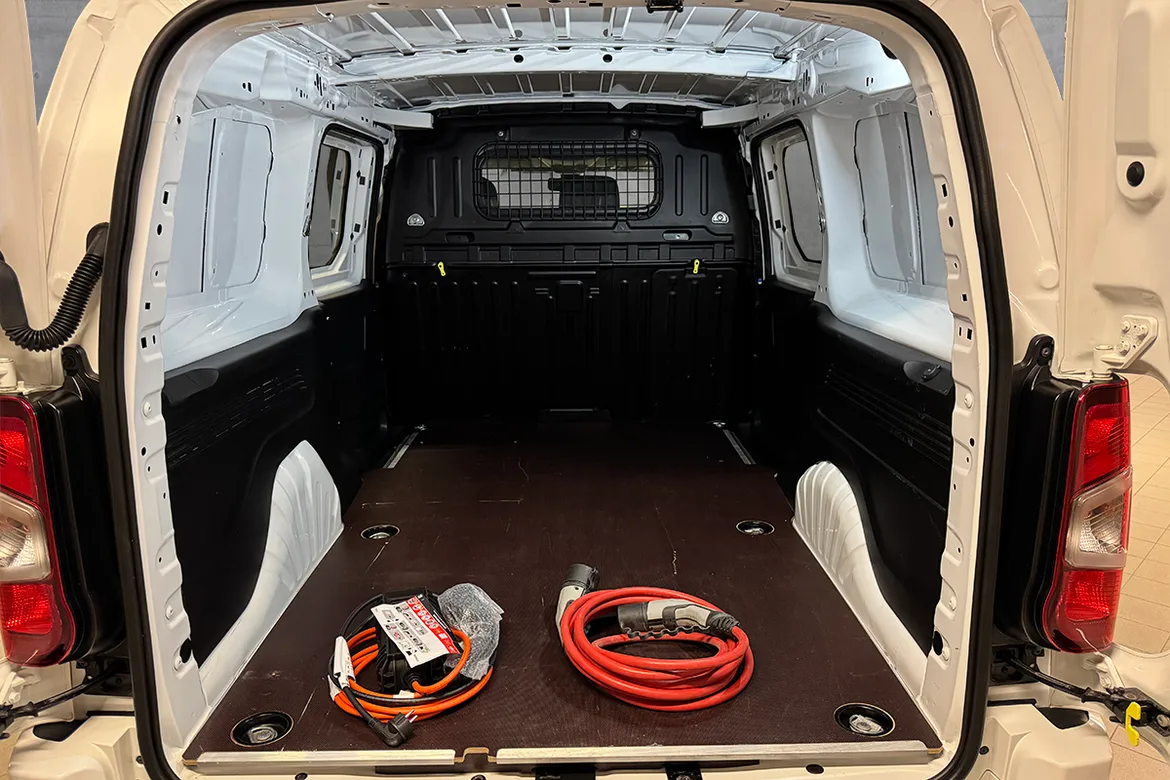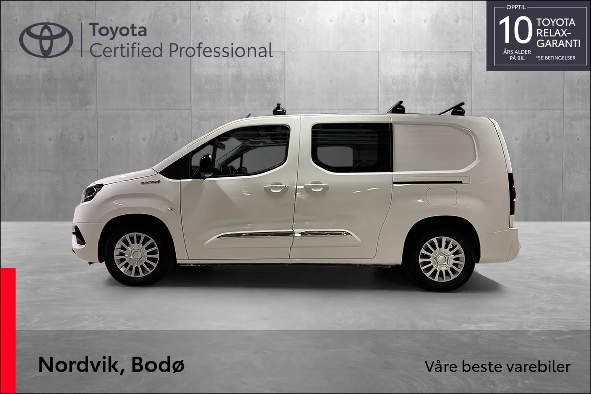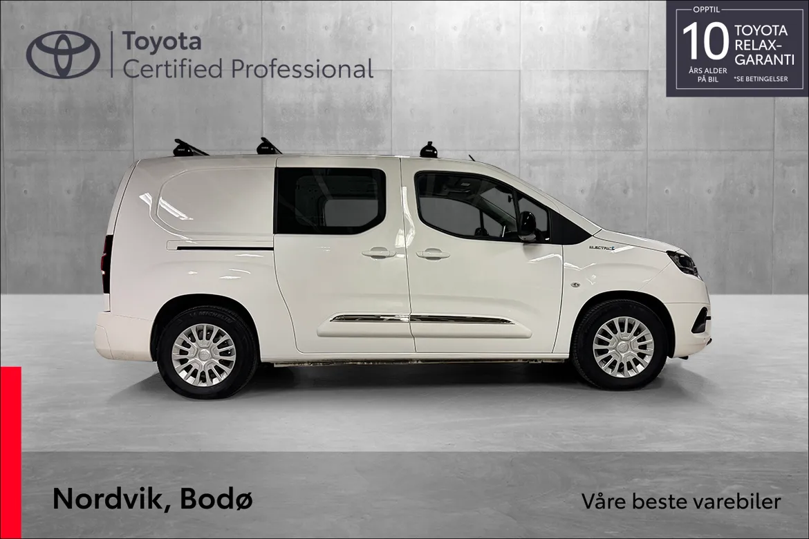 Proace City Electric lang utgave med sidehengslet bakdør og 2 skyvedører.