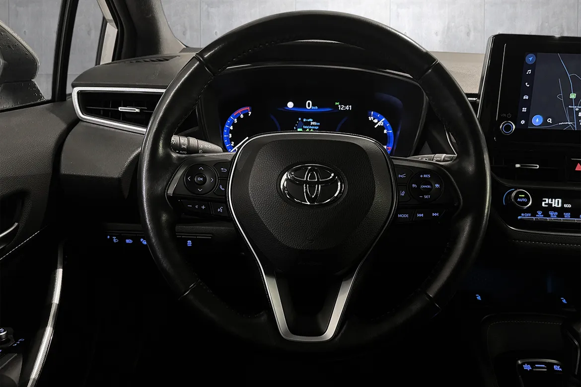 Med 4. generasjon hybridsystem, stilig design og enormt mye utstyr er det lett og finne seg til rette i nye Corolla. En behagelig bil med Toyota sin flotte hybrid drivlinje. Den momentsterke kombinasjonen med bensin og el yter totalt 184hk. I for eksempel bykjøring kan den kjøre på ren elektrisk kraft. Dermed slipper den ikke ut miljøgasser og drivstofforbruket er lik null. Her er det ingen kabel å tenke på siden bilen generer strøm selv! Når batteriet har lite strøm igjen eller at du skal opp i høyere hastigheter slår bensinmotoren silkemykt inn. Bilen styrer selv om den går på en motor eller begge, alt etter forhold for å skape mest mulig effektiv fremdrift.