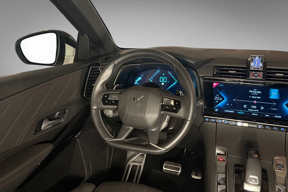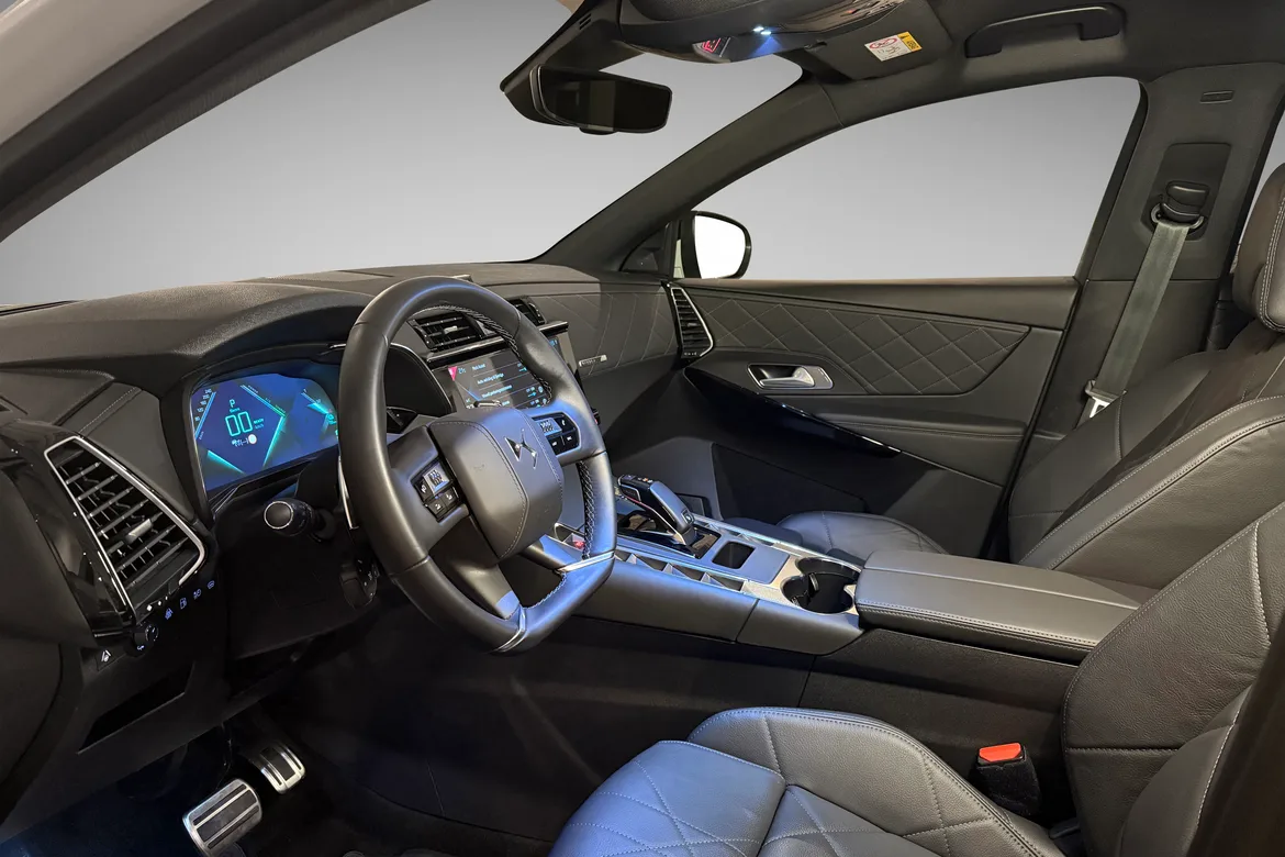 Den ladbare drivlinjen leverer 300 hk og opptil 55 km elektrisk rekkevidde (WLTP) – perfekt for hverdagskjøring på strøm, samtidig som bensinmotoren gir deg full frihet på langtur. Bilen har DS Active Scan Suspension som automatisk tilpasser fjæringen etter veien foran deg for optimal komfort.