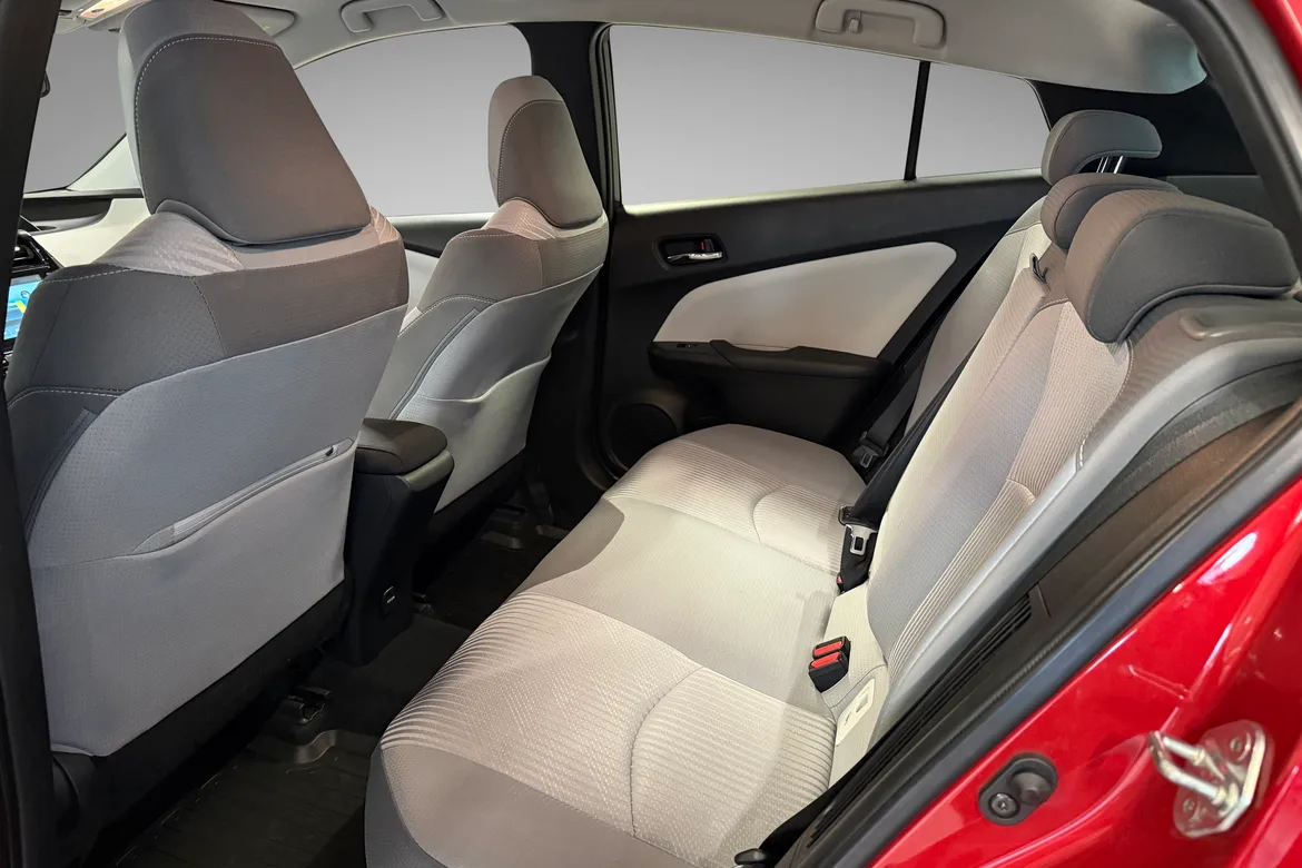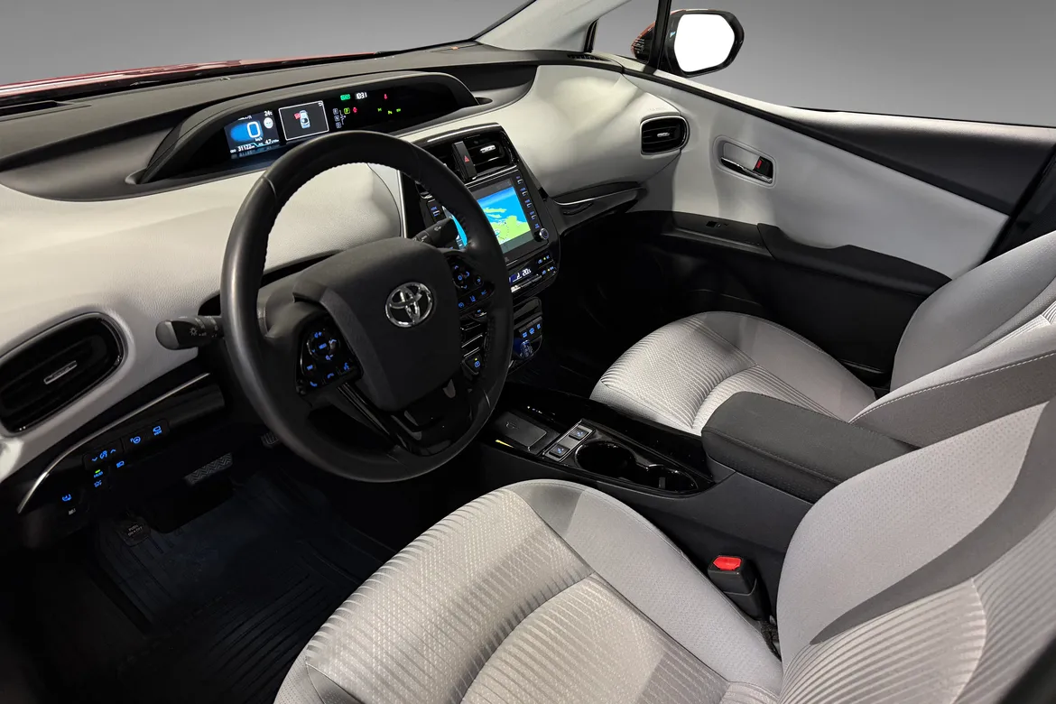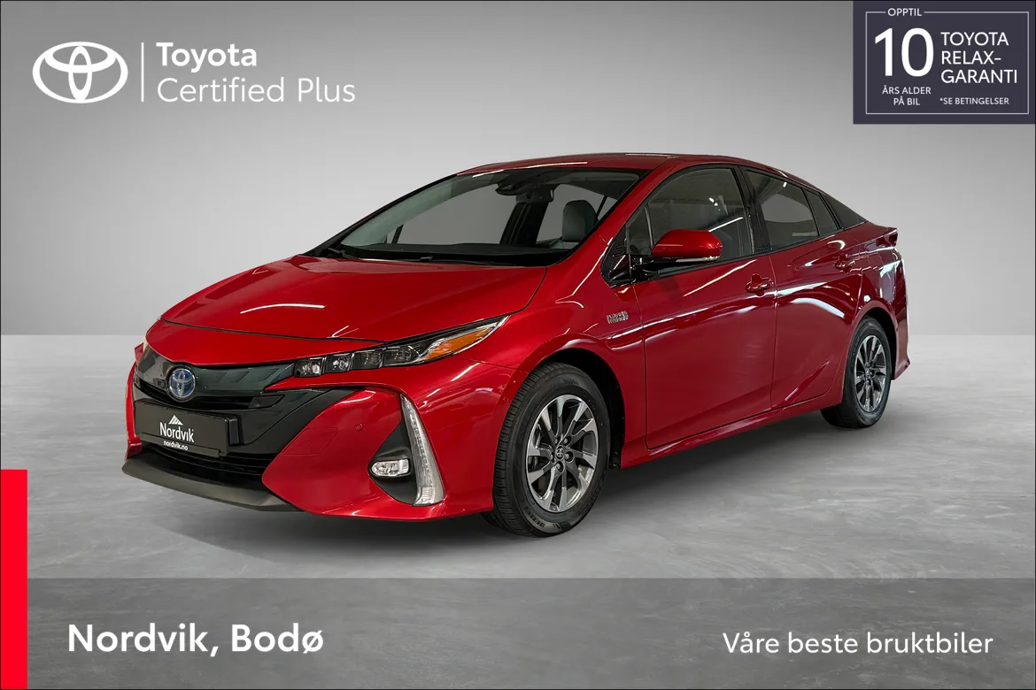 Vi har nå gleden av å tilby en flott Toyota Prius Plug-in Hybrid i en elegant rød metallic farge, i kombinasjon med lyst og trivelig interiør. Denne bilen kombinerer banebrytende hybridteknologi med svært god driftssikkerhet – et kjennetegn Toyota Prius er verdenskjent for.