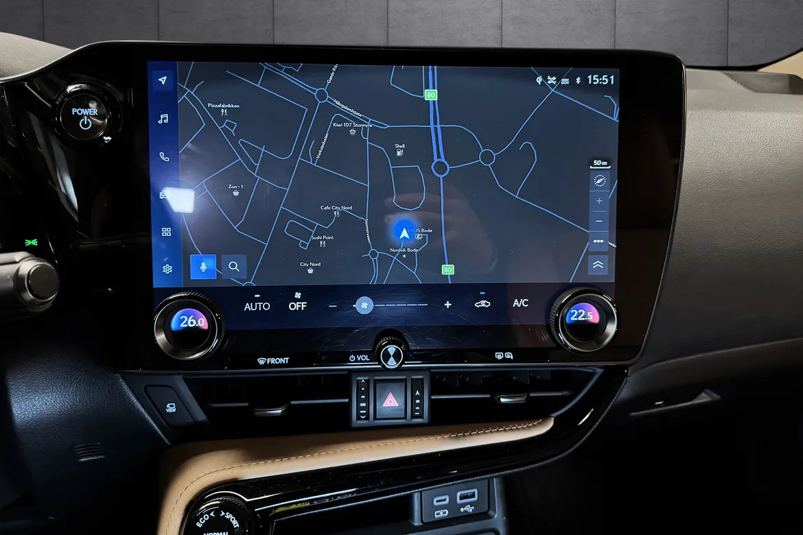 Nye NX 450h+ bærer fruktene av mange års erfaring og lederskap innen utviklingen av elektrifisering. Med det mest avanserte Plug-in hybriddrivverket som er tilgjengelig i dag, er nye NX mer økonomisk i drift og har et mindre miljøavtrykk enn bensin- og dieseldrevne mellomstore SUV’er. Den setter en ny standard for plug-in hybrider, og ikke bare takket være opptil 74 kilometerne elektrisk rekkevidde, 309 hestekrefter eller den kraftfulle akselerasjonen. Det som også imponerer, er den klasseledende effektiviteten når batteriet er tomt, og det helt uten behov for å kompromisse på hverken bagasjeromsplass eller kapasiteten til drivstofftanken.