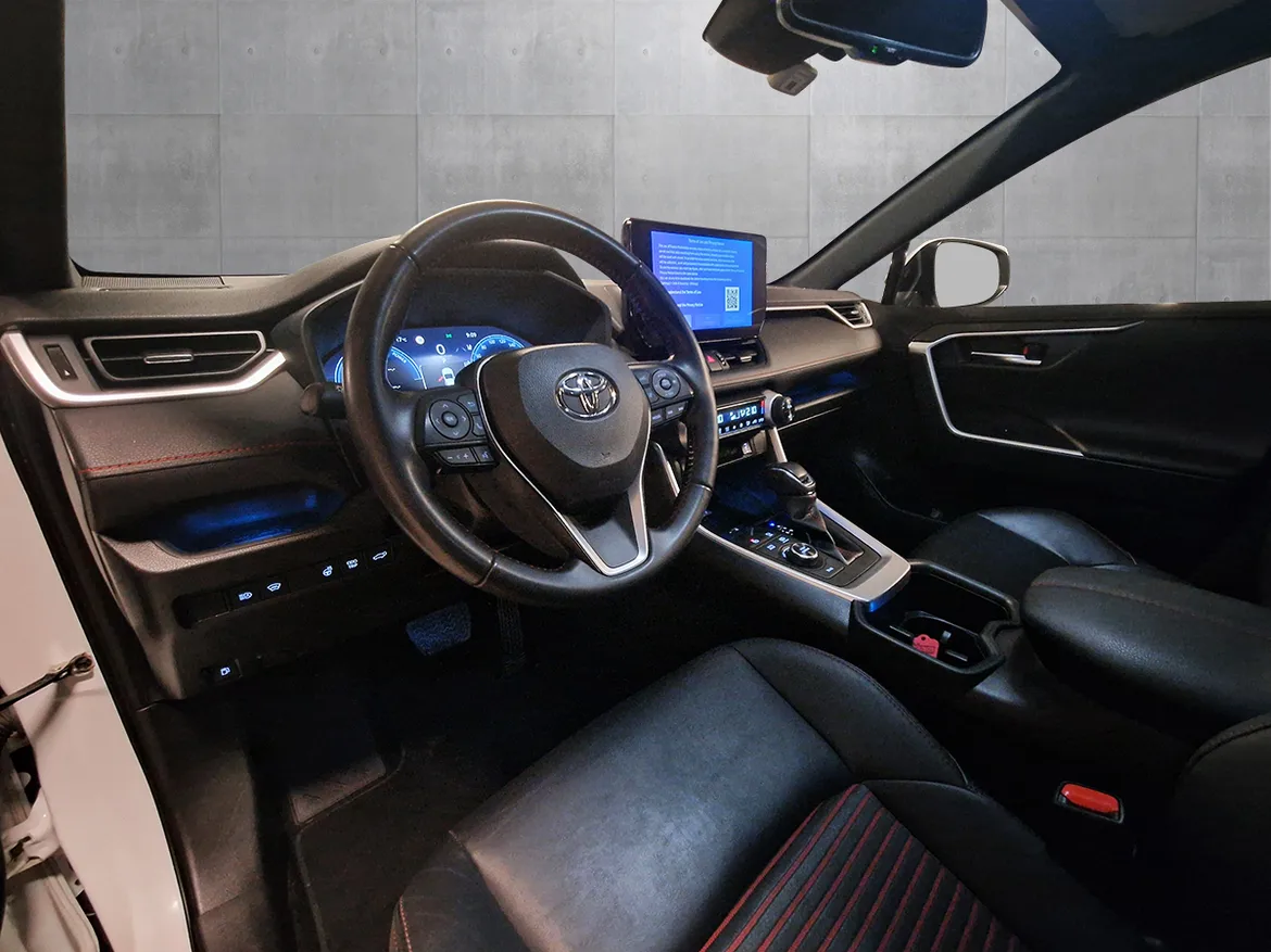 AutomatFlott Toyota RAV4 ladbar hybrid med inntil 75 km WLTP rekkevidde på strøm, god plass, firehjulstrekk, automat og 306 hk! Dette er en suksess oppskrift for Norske kunder. Pen perlemor hvit metallic farge med mørke detaljer som passer bilen meget godt. Toyota RAV4 har et pent design, mye utstyr, samt trygge og gode kjøreegenskaper. Bilen har god bakkeklaring, og man sitter høyt og oversiktlig. RAV4 har god innvendig plass, og Toyota er kjent for sine driftssikre biler!