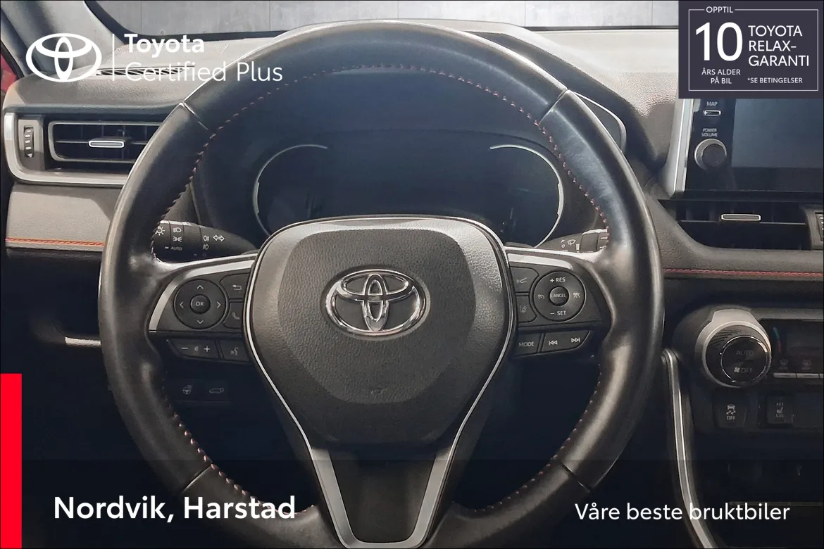 AutomatFlott Toyota RAV4 ladbar hybrid med inntil 75 km WLTP rekkevidde på strøm, god plass, firehjulstrekk, automat og 306 hk! Dette er en suksess oppskrift for Norske kunder. Pen metallic farge med mørke detaljer som passer bilen meget godt. Toyota RAV4 har et pent design, mye utstyr, samt trygge og gode kjøreegenskaper. Bilen har god bakkeklaring, og man sitter høyt og oversiktlig. RAV4 har god innvendig plass, og Toyota er kjent for sine driftssikre biler!