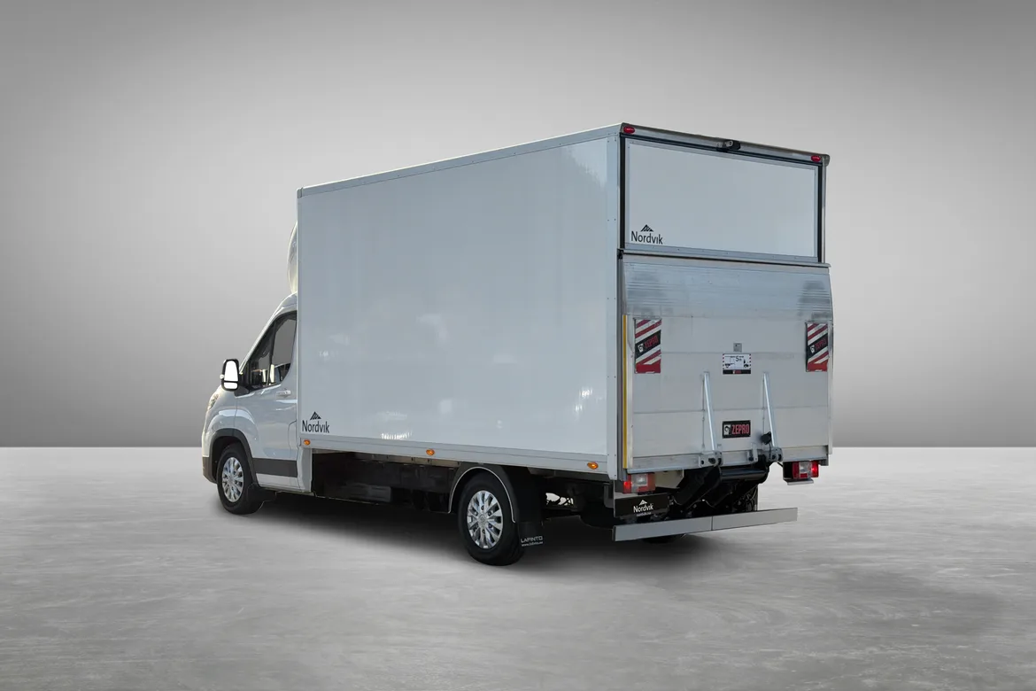 Bilen har skappåbygg fra Lafinto med Zepro løftelem.