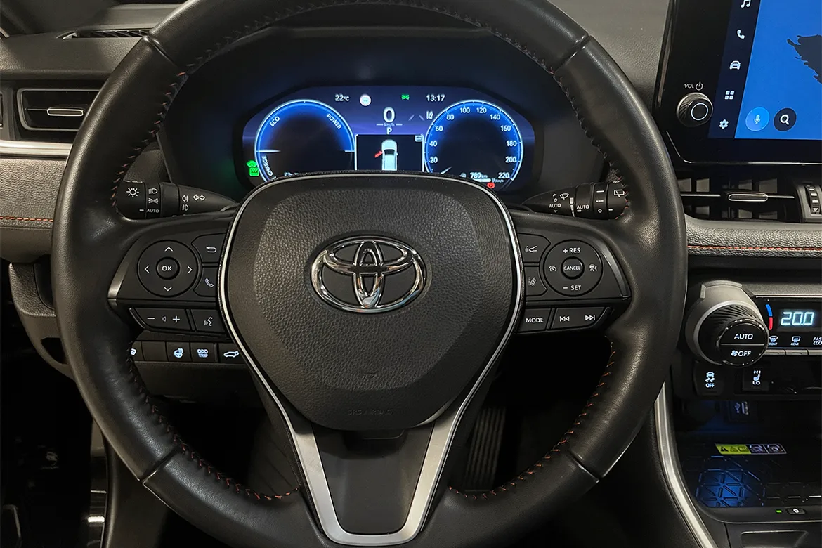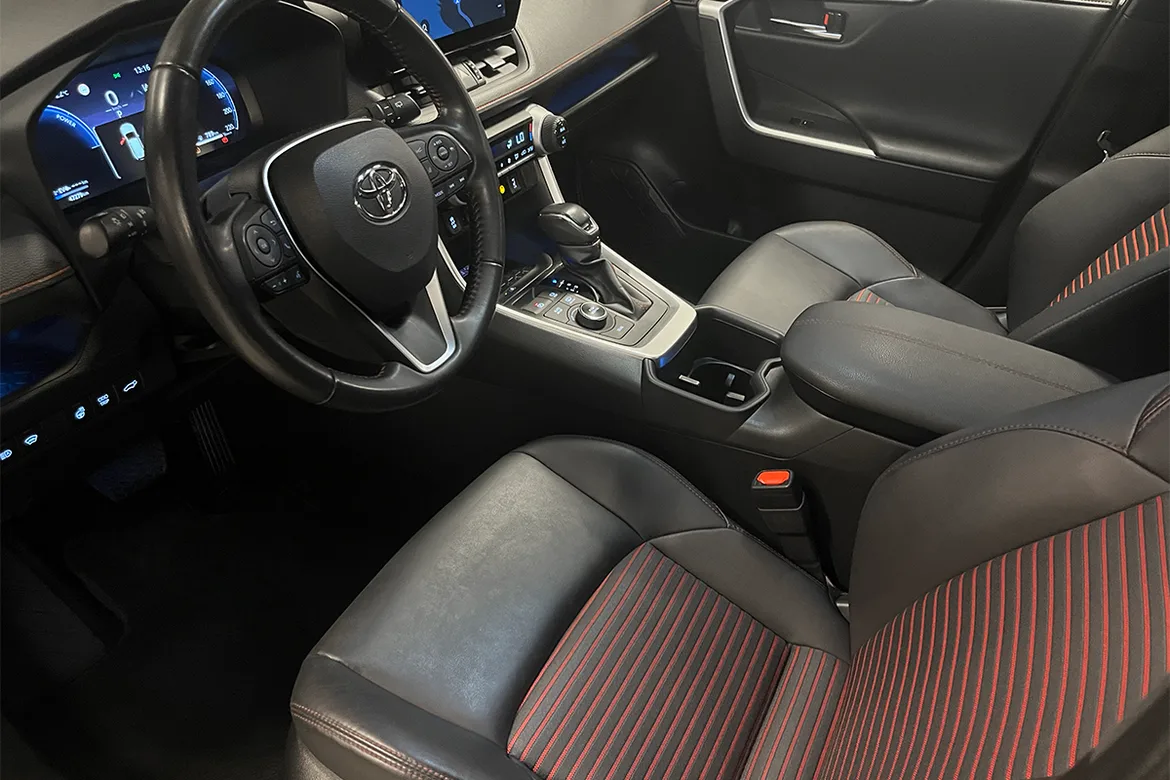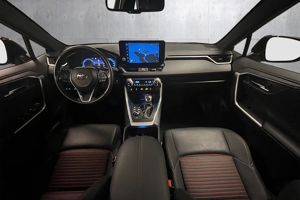 AutomatFlott Toyota RAV4 ladbar hybrid med inntil 75 km WLTP rekkevidde på strøm, god plass, firehjulstrekk, automat og 306 hk! Dette er en suksess oppskrift for Norske kunder. Pen metallic farge med mørke detaljer som passer bilen meget godt. Toyota RAV4 har et pent design, mye utstyr, samt trygge og gode kjøreegenskaper. Bilen har god bakkeklaring, og man sitter høyt og oversiktlig. RAV4 har god innvendig plass, og Toyota er kjent for sine driftssikre biler!