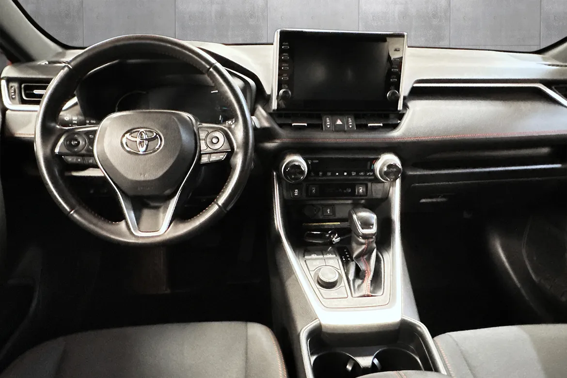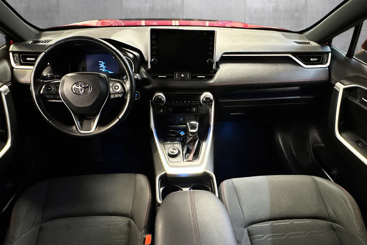 AutomatFlott Toyota RAV4 ladbar hybrid med inntil 75 km WLTP rekkevidde på strøm, god plass, firehjulstrekk, automat og 306 hk! Dette er en suksess oppskrift for Norske kunder. Pen metallic farge med mørke detaljer som passer bilen meget godt. Toyota RAV4 har et pent design, mye utstyr, samt trygge og gode kjøreegenskaper. Bilen har god bakkeklaring, og man sitter høyt og oversiktlig. RAV4 har god innvendig plass, og Toyota er kjent for sine driftssikre biler!