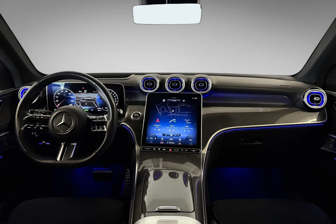 AutomatVi har nå inne denne meget flotte Mercedes-Benz GLC300e ladbar bensin hybrid, med høyt utstyrsnivå til en hyggelig pris. Bilen har en stilfull hvit metallic farge i kombinasjon med mørke eksteriørdetaljer (nattpakke), AMG stylingpakke, mørkt interiør med sort taktrekk og panoramatak.