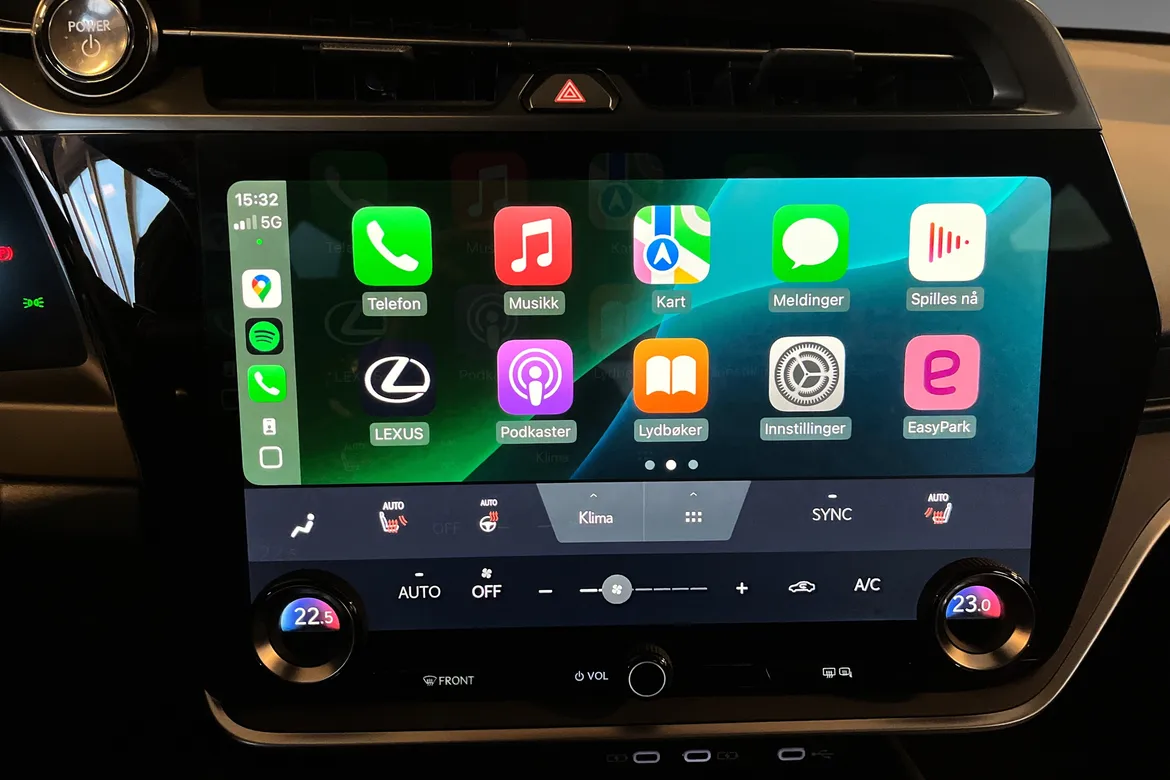 * Lexus LINK app. Her kan man låse opp og igjen bilen, starte lading, forvarme bilen og mye mer