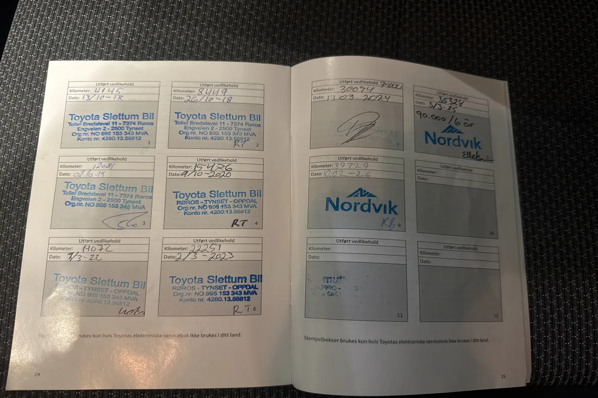 Bilens serviceprogram er fulgt. Bilen har fått service i henhold til fabrikkens retningslinjer.