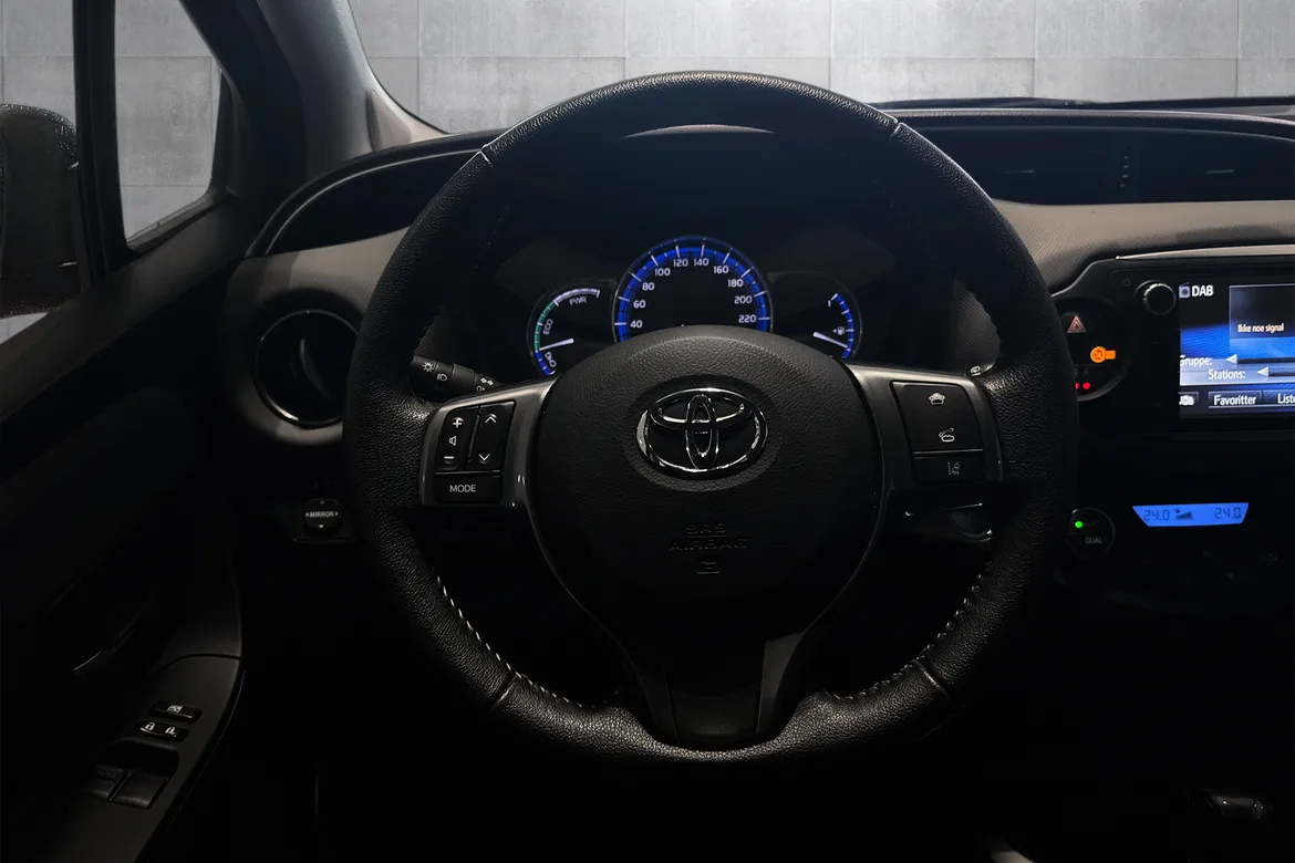Yaris har vært en godt likt småbil i mange år. Faktorer som driftsikkerhet, høy sittestilling og romslig interiør gjør at bilen passer veldig mange. En behagelig bil med Toyotas flotte hybrid drivlinje. Den momentsterke kombinasjonen med bensin og elektrisitet yter totalt 100hk. I for ekesmpel bykjøring kan den kjøre på ren elektrisk kraft. Dermed slipper den ikke ut miljøgasser og drivstofforbruket er lik null. Her er det ingen kabel å tenke på siden bilen generer strøm selv. Når batteriet har lite strøm igjen eller at du skal opp i høyere hastigheter slår bensinmotoren silkemykt inn. Bilen styrer selv om den går på en motor eller begge, alt etter forhold for å skape mest mulig effektiv fremdrift. Sømløst og enkelt!