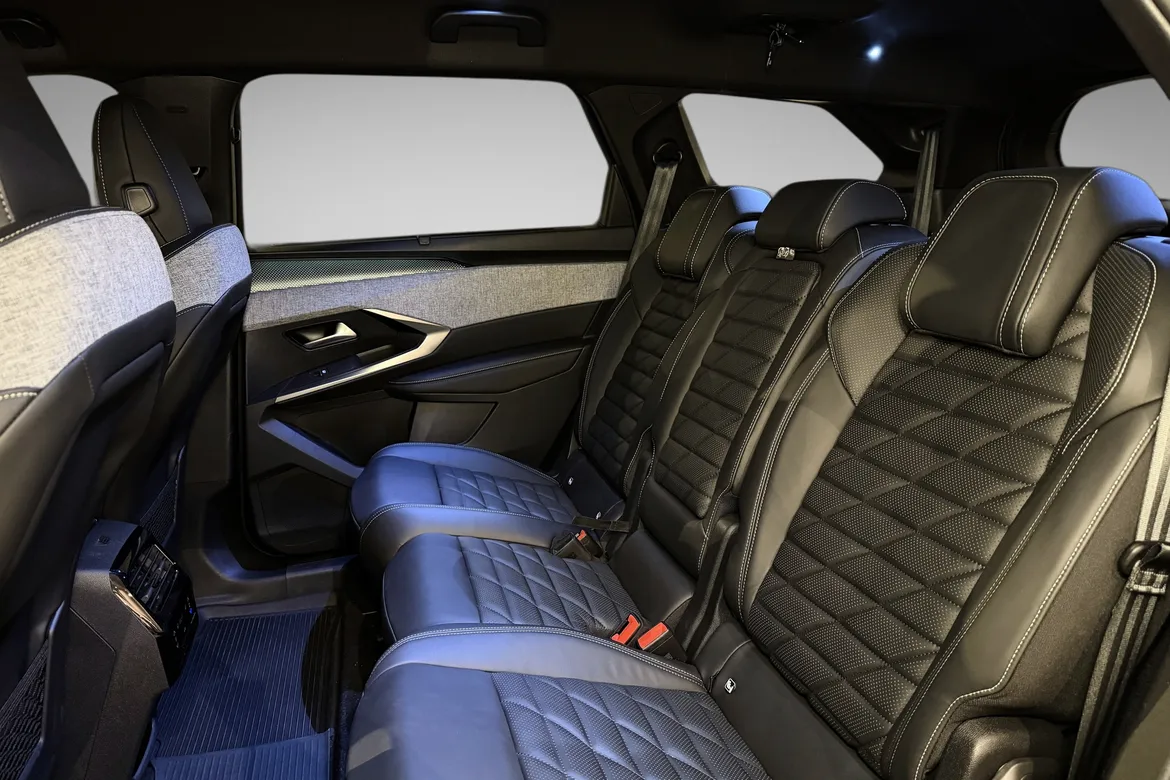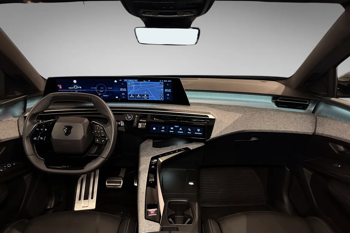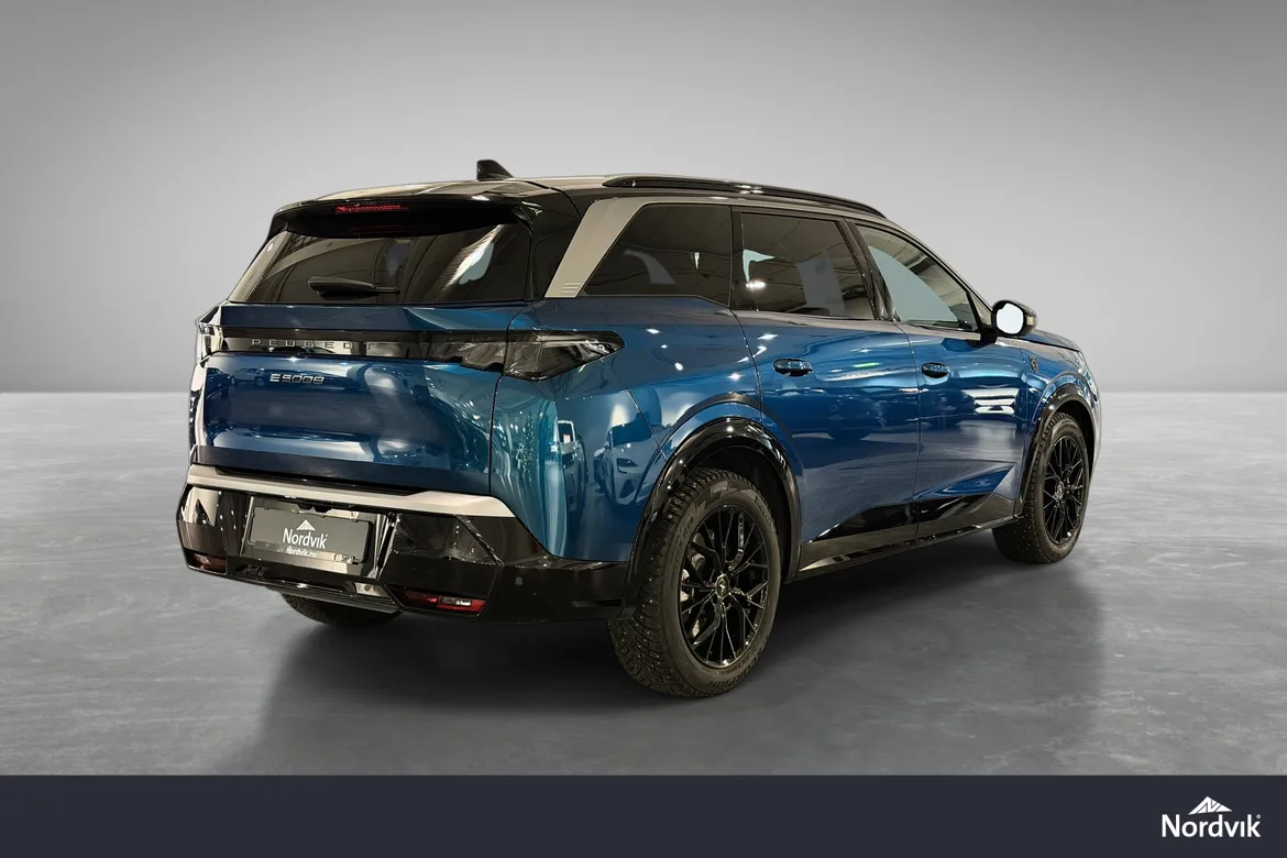 AutomatPeugeot E-5008 GT representerer en helt ny generasjon elektriske familiebiler med fokus på komfort, plass og moderne teknologi. GT-modellen byr på høyt utstyrsnivå, gjennomført interiør, en stor buet i-Cockpit-skjerm og nydelige designlinjer som skiller seg tydelig fra konkurrentene.