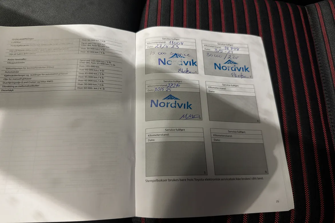 Bilen har fått service i henhold til fabrikkens retningslinjer.
